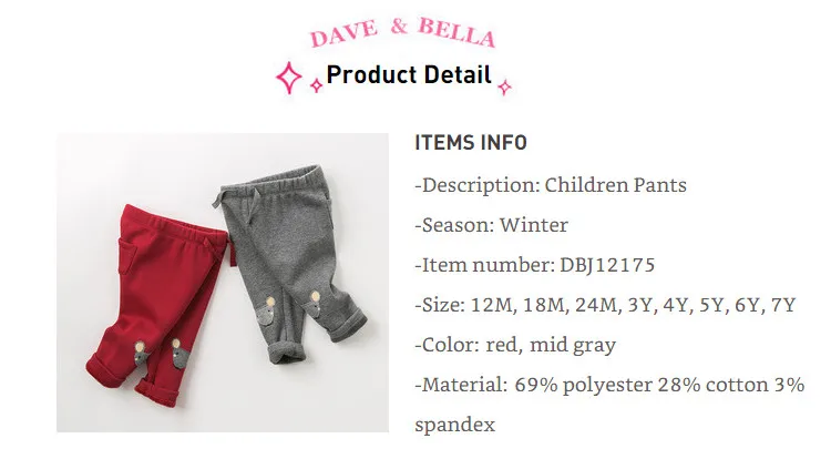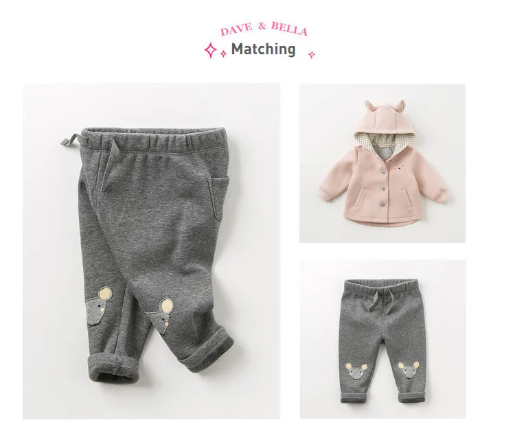 DBJ12175 dave bella зимние штаны для мальчиков и девочек, модные детские длинные штаны унисекс с мультяшным рисунком, штаны для младенцев