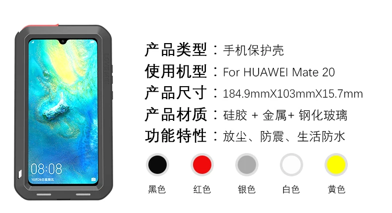 Металлический водонепроницаемый чехол Love Mei для Huawei Mate 20 LiteHuawei Mate 20 ProHuawei Mate 20, противоударный армированный стеклянный