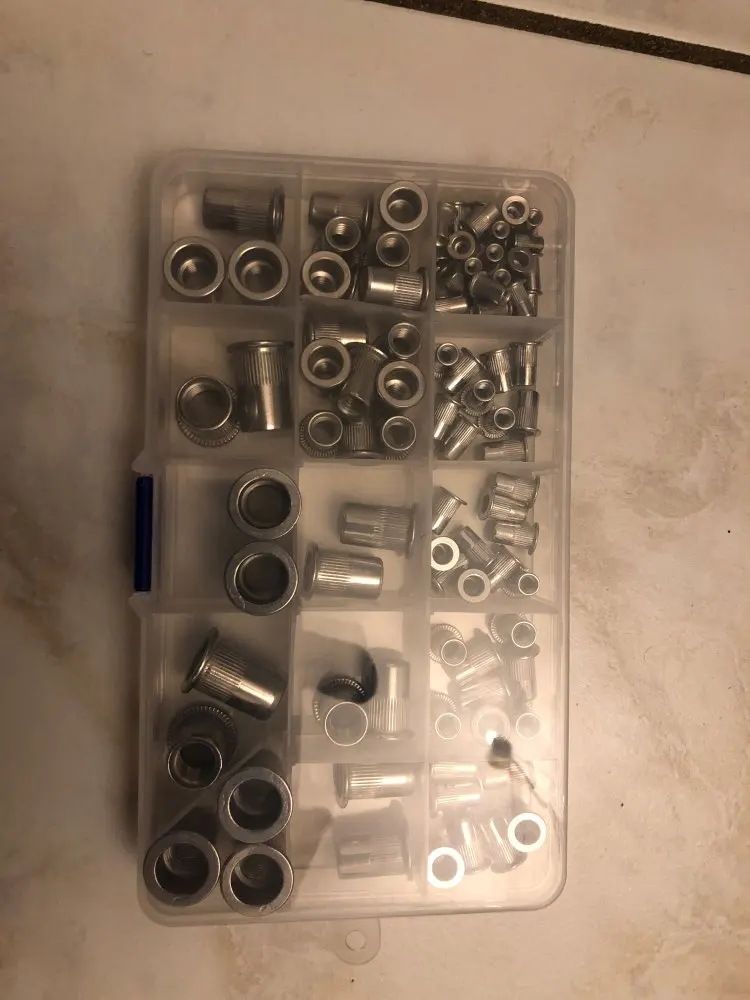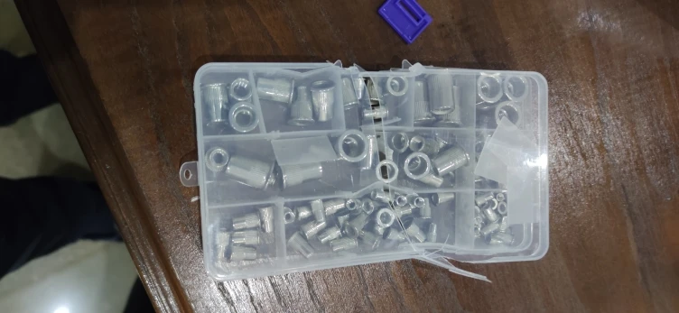 Заклёпки в удобной коробочке.Закрывается и открывается не один раз и ломается ,как это обычно бывает.Сами заклёпки похоже действительно из нержавейки потому как не магнитятся.С заклепочником работают нормально.Вполне доволен покупкой