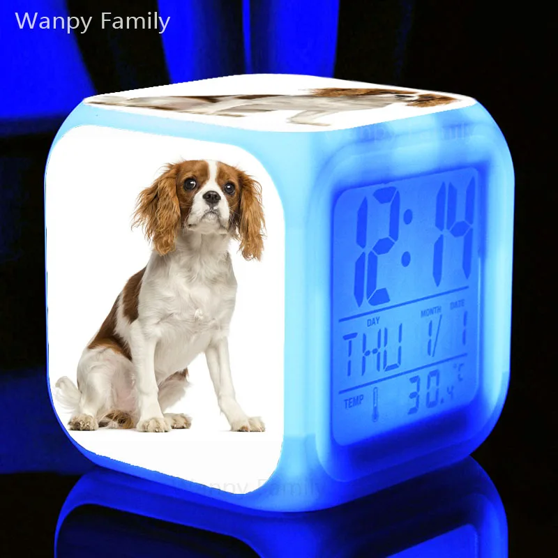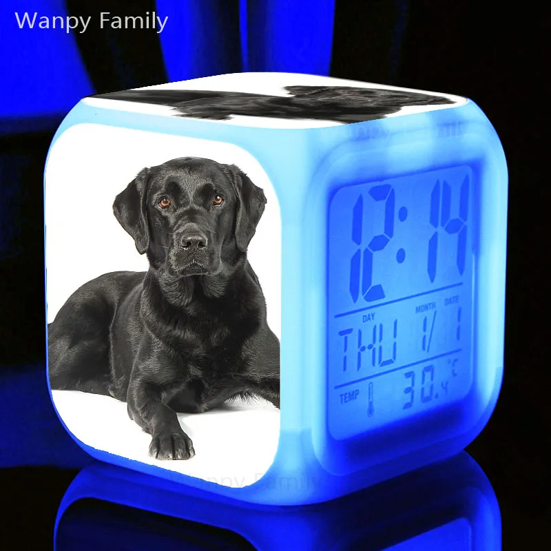 Будильник с изображением собаки, 7 цветов, светящийся многофункциональный цифровой будильник, детский подарок на день рождения, сенсорные часы