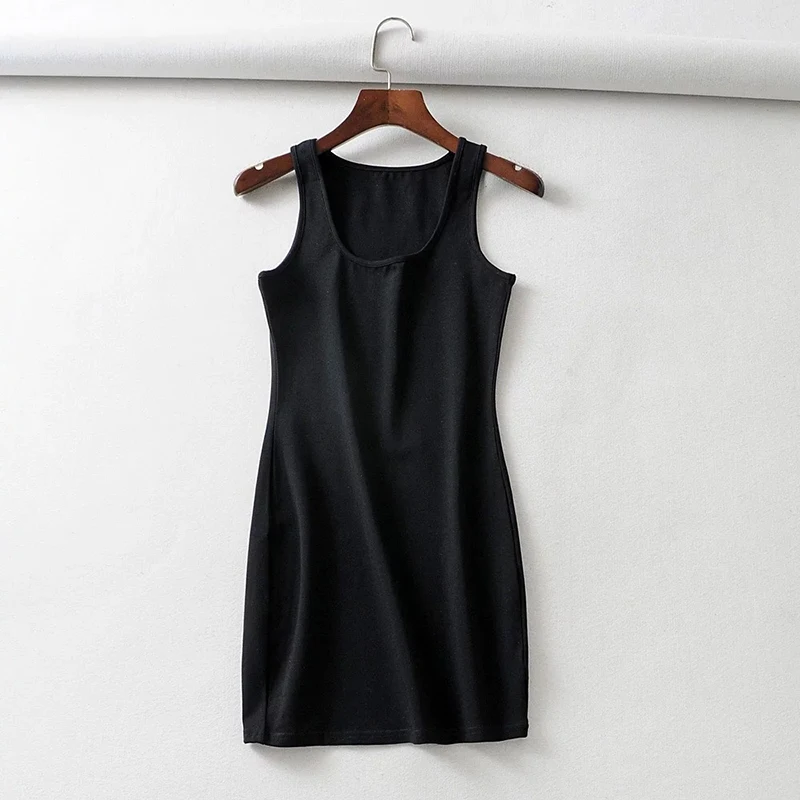 Летнее платье, сексуальное однотонное Черное мини-платье на бретеля...
