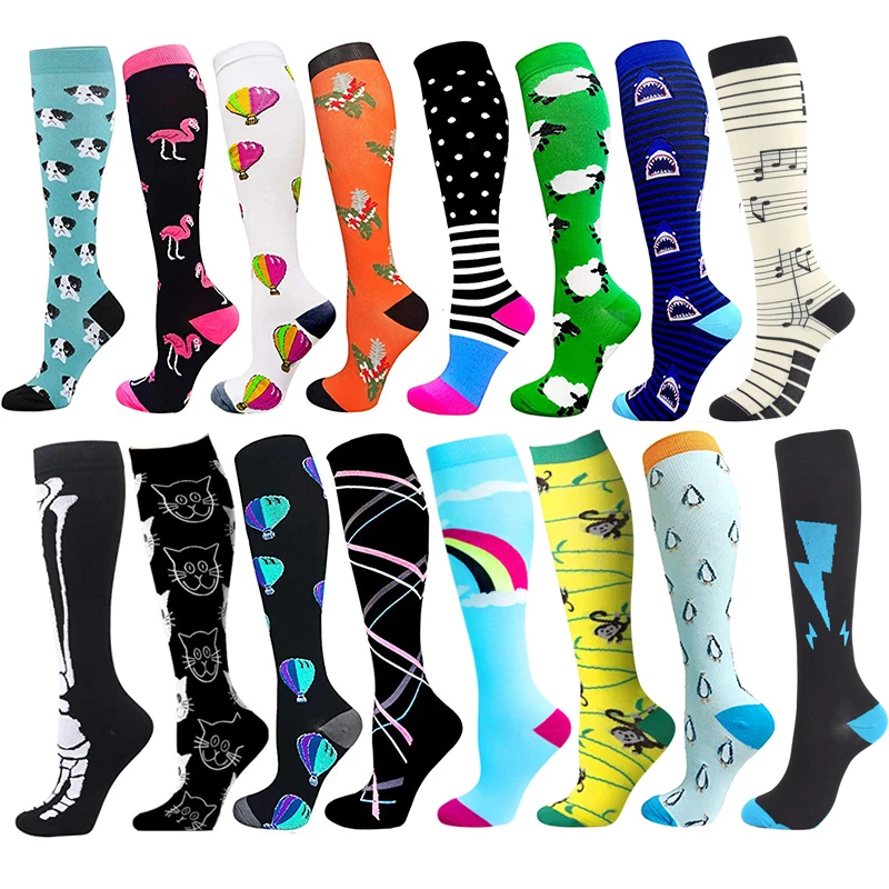 Спортивные Компрессионные чулки с забавным рисунком, компрессионные носки в горошек для Хэллоуина, для бега, езды на велосипеде, разные цвета