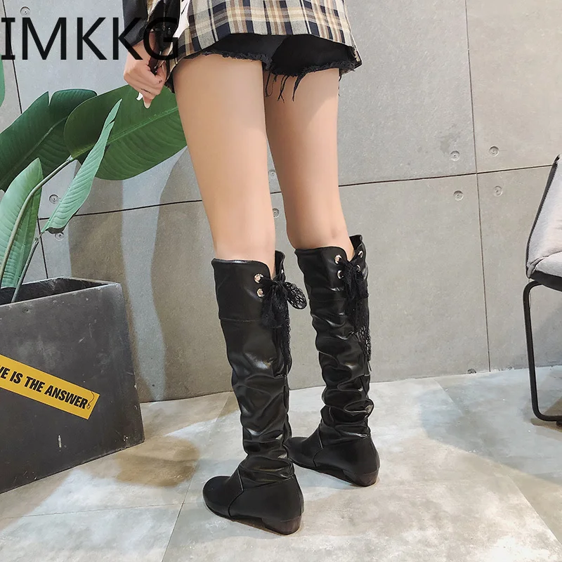 Женские высокие сапоги; осенние модные женские сапоги из искусственной кожи на шнуровке; женские сапоги; высокие сапоги; женская обувь
