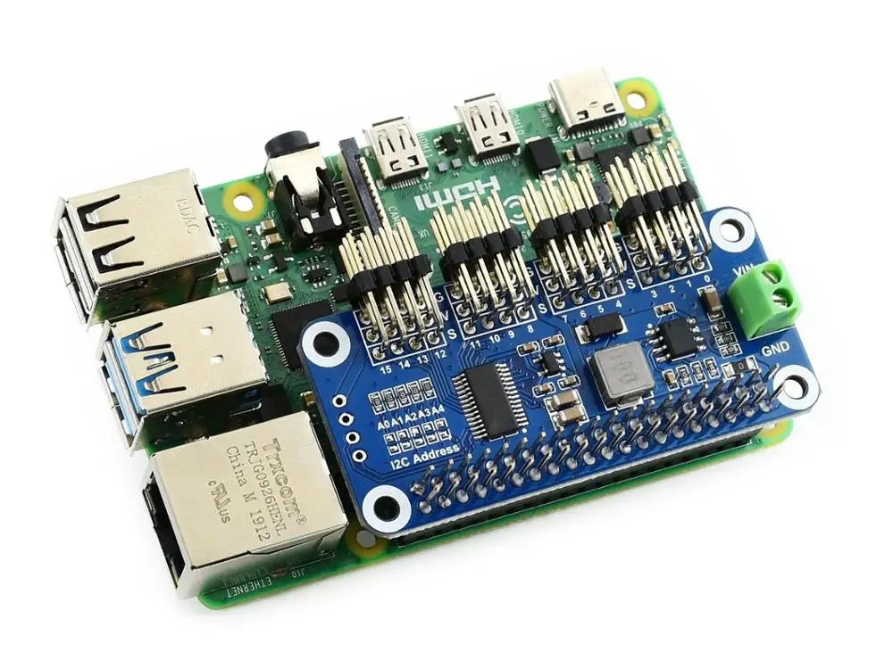 Шляпа сервопривода (B) для Raspberry Pi, 16-канальный, 12-битный, интерфейс I2C, прямоугольный разъем