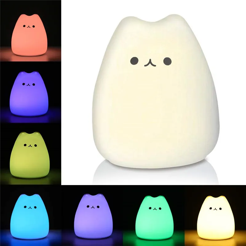Силиконовый светодиодный ночник с сенсорным датчиком в виде кошки, настольная лампа с 3D рисунком животных, прикроватный светильник для спальни, светильник ский подарок на Рождество