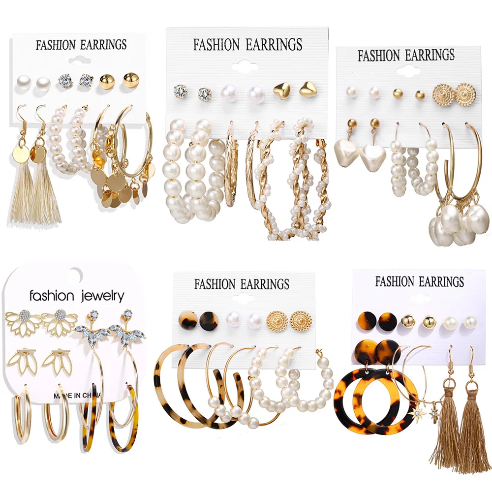 Модные Винтажные большие смешанные Комплект сережек для женщин геом...