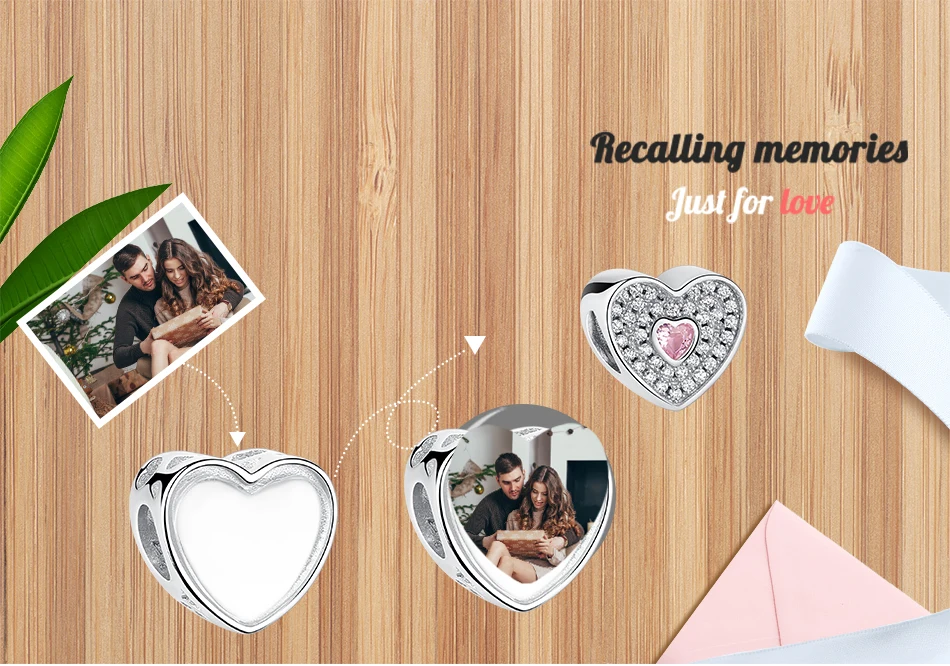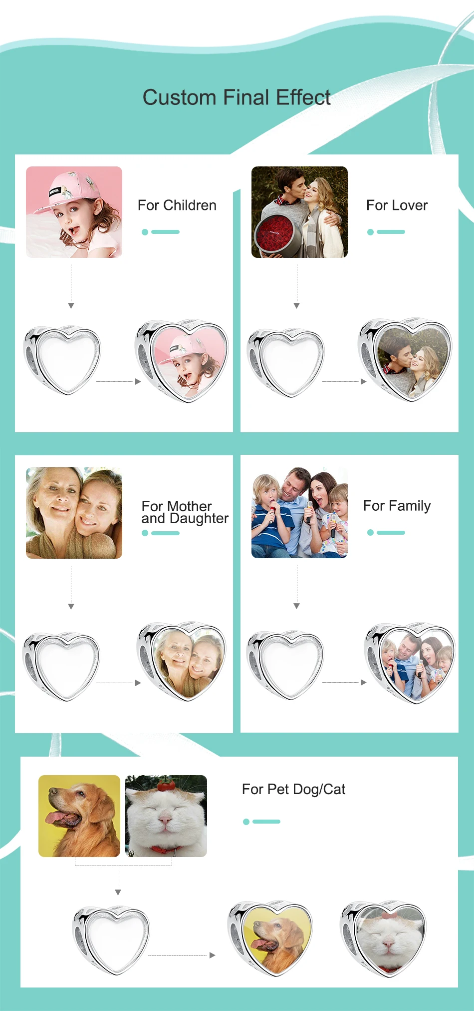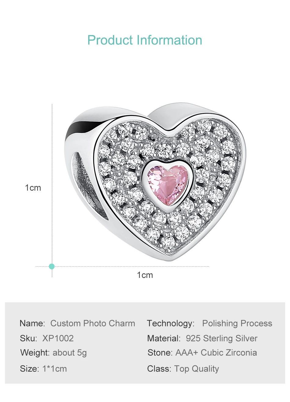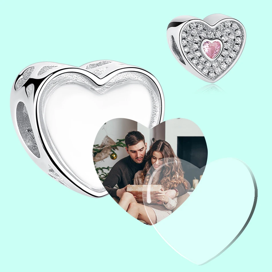 Индивидуальные бусины в форме сердца с кристаллом из стерлингового серебра 925 пробы на заказ фото очарование подходит оригинальный браслет и браслет DIY Ювелирные изделия уникальный подарок