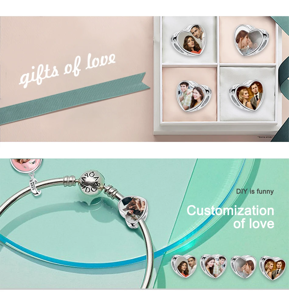 Шармы-бусины ELESHE из серебра 925 пробы с индивидуальным фото на з...