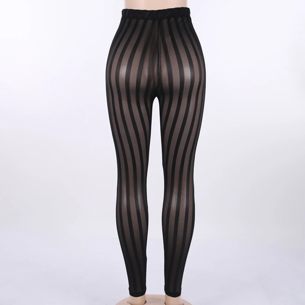 Леггинсы женские в полоску, пикантные сетчатые прозрачные брюки до колен, облегающие брюки, клубная одежда
