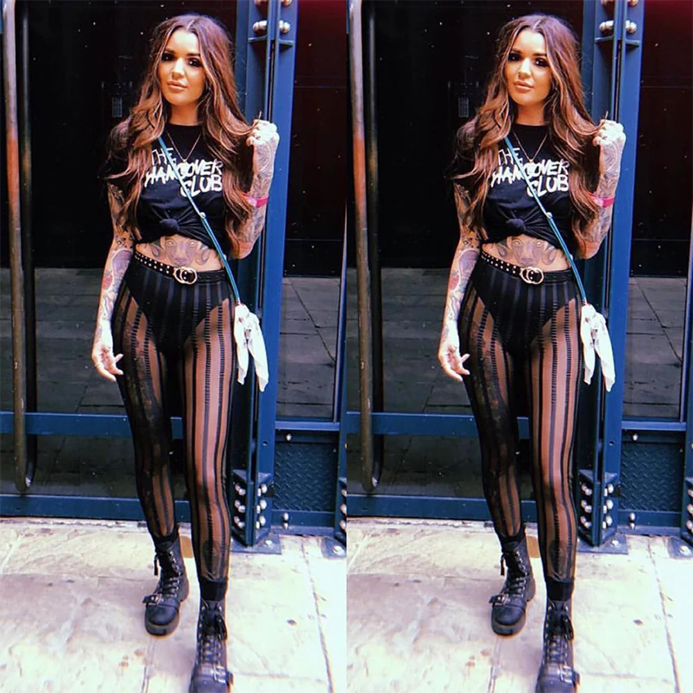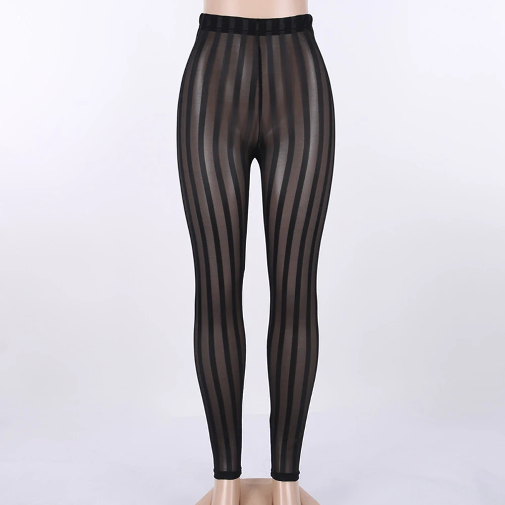 Леггинсы женские, сетчатые, полосатые, узкие, до колен