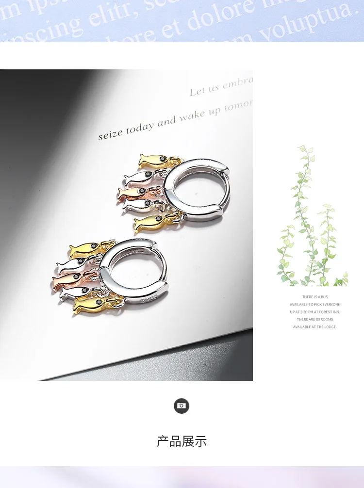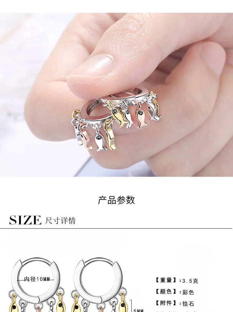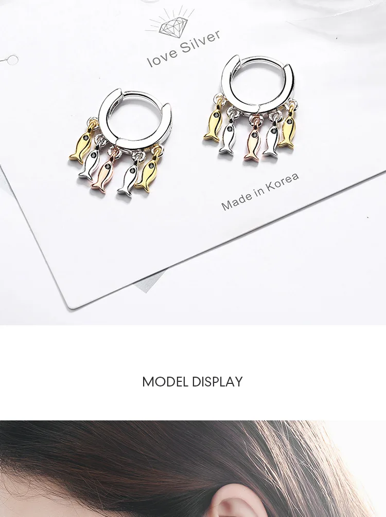 Женские серьги-кольца в виде маленькой рыбы ANENJERY, Серебристые с...