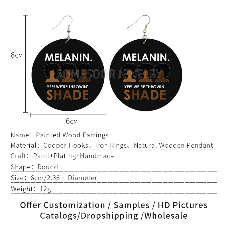 SOMESOOR Африка меланин деревянные висячие серьги черный Throwin тени афро натуральные волосы дерево болтаются ювелирные изделия для женщин рождественские подарки