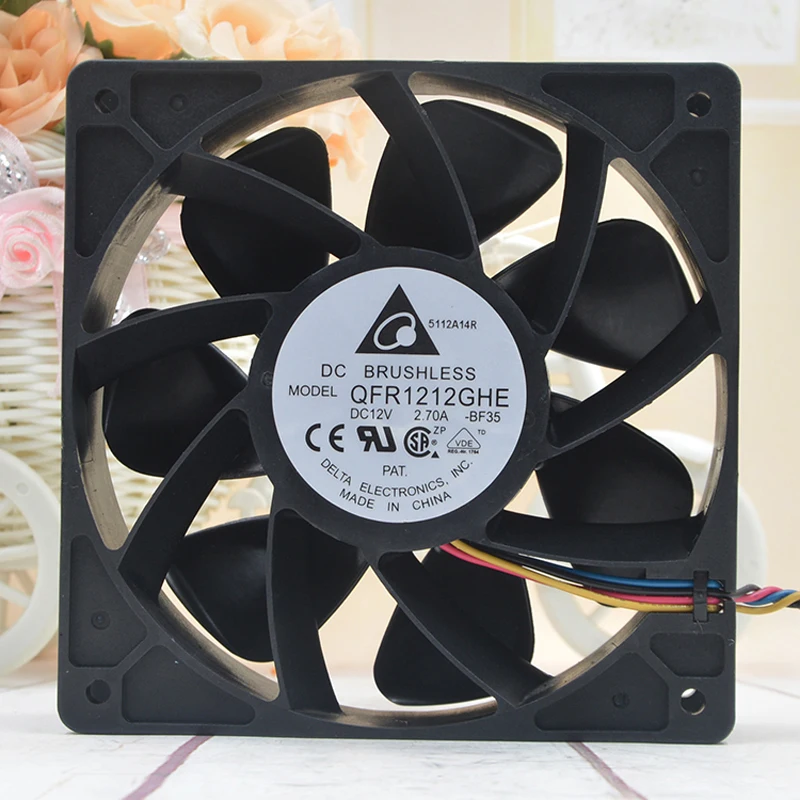 Оригинальный 4-проводной ШИМ-контроллер скорости DELTA QFR1212GHE, 12 В, 12038 А, 12 см, 120 дюйма, 120*38 мм, охлаждающий вентилятор для майнинга биткоинов