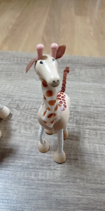 superbe jouet en bois de taille moyenne en forme de girafe de très belle qualité qui a été livrée très vite un grand merci au vendeur