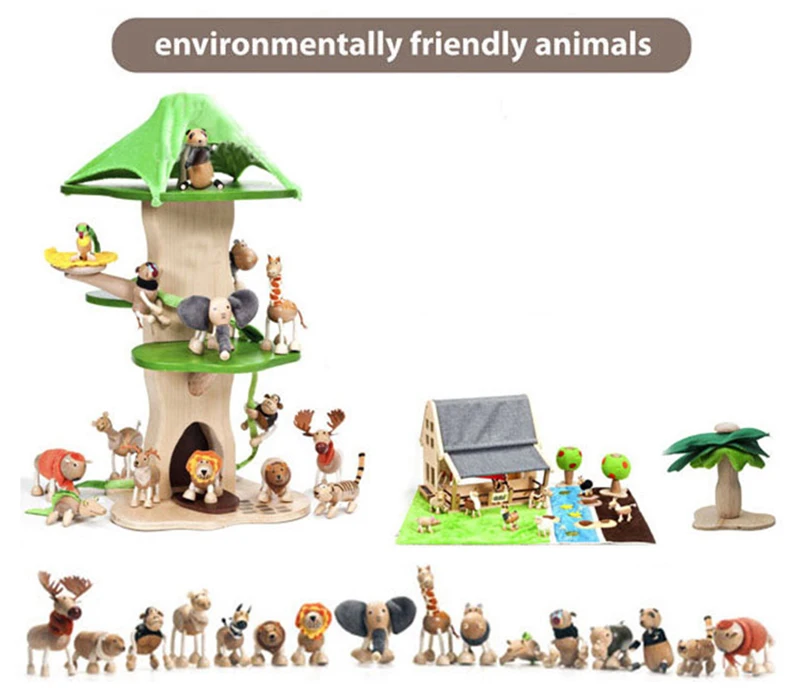 Игрушка детская, слон, обезьяна, жираф, Лев, тигр, медведь, деревянная