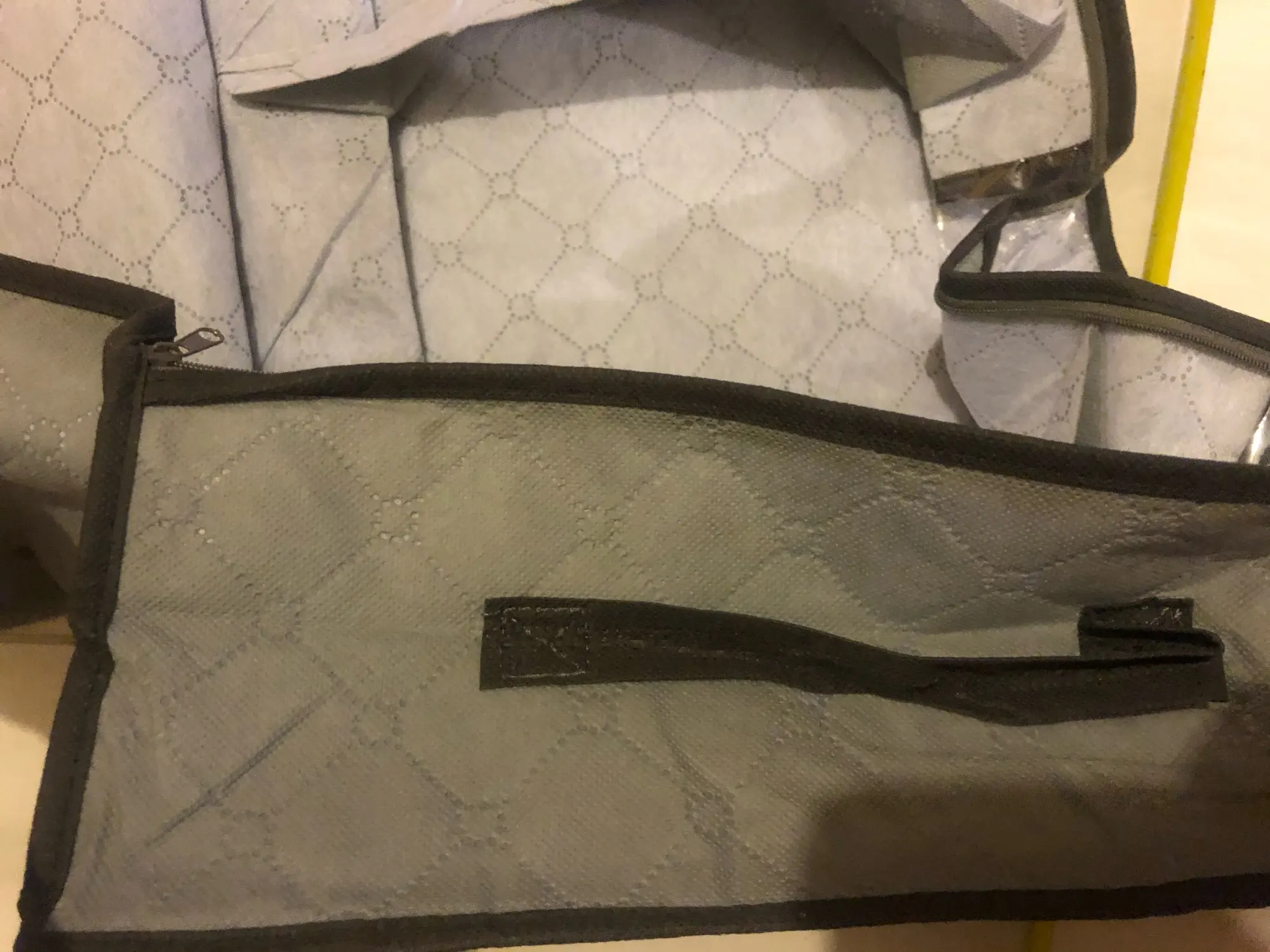 Достаточно плотные для хранения одеяла, без ручек, хорошие сумки для кладовки. Доставка не отслеживается, около трёх месяцев до Хабаровска.