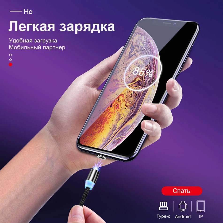 Магнитный кабель KSTUCNE, Micro USB, type C, Lightning, 1м