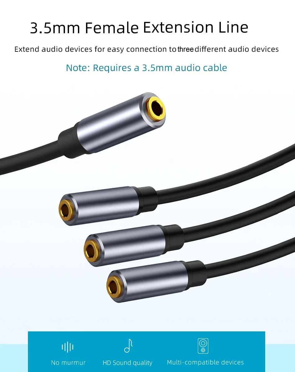 Разветвитель для наушников, аудио Удлинительный кабель 3,5 мм AUX мама на 3 гнезда 3,5 мм адаптер для наушников для iPhone Samsung Huawei