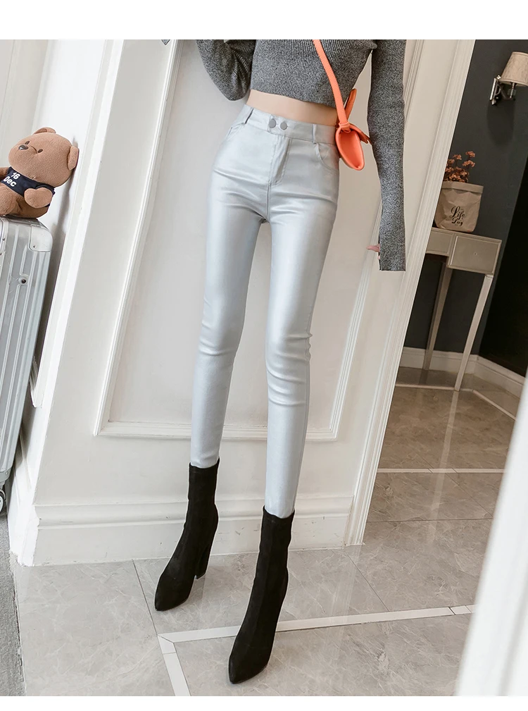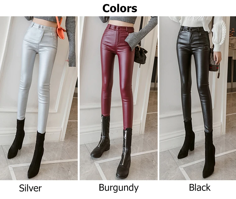 Jielur PU искусственная кожа женские лосины обтягивающие серебристый красный черные брюки для женщин и девушек S-3XL тонкийфлисовые узкие Брюки Легинсы приклад