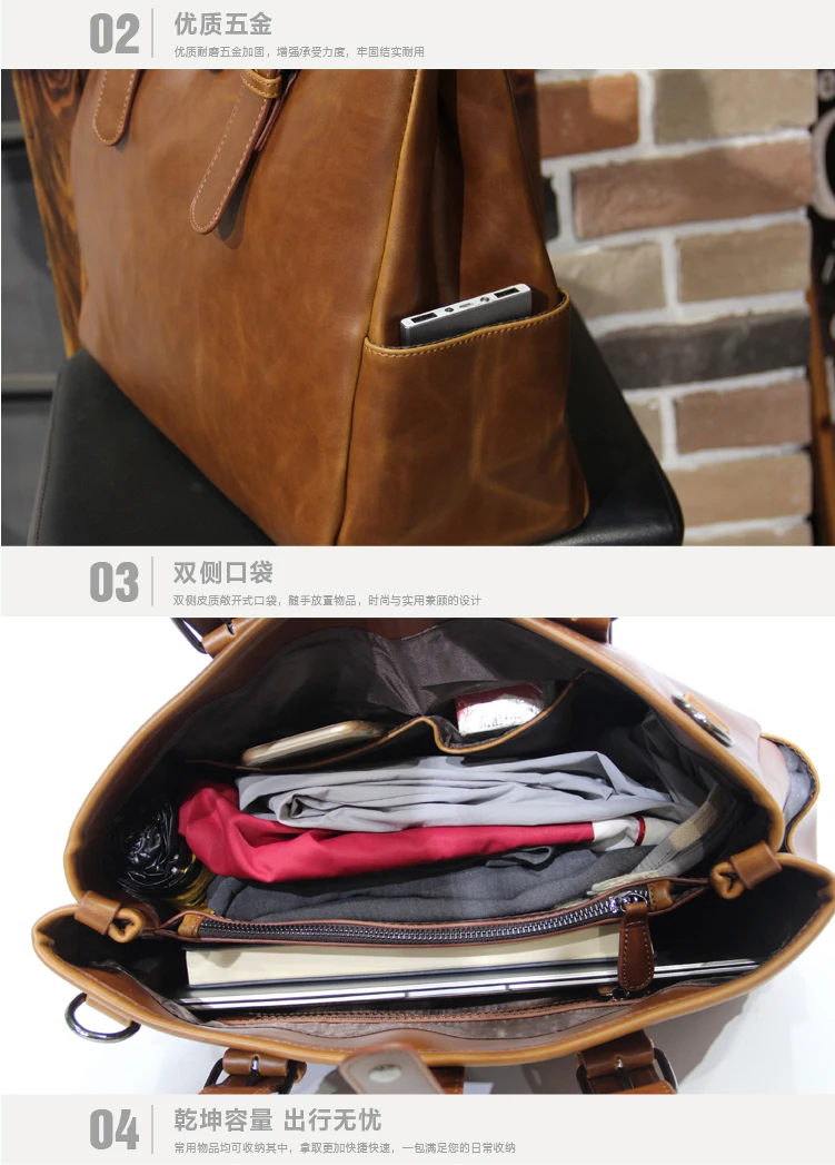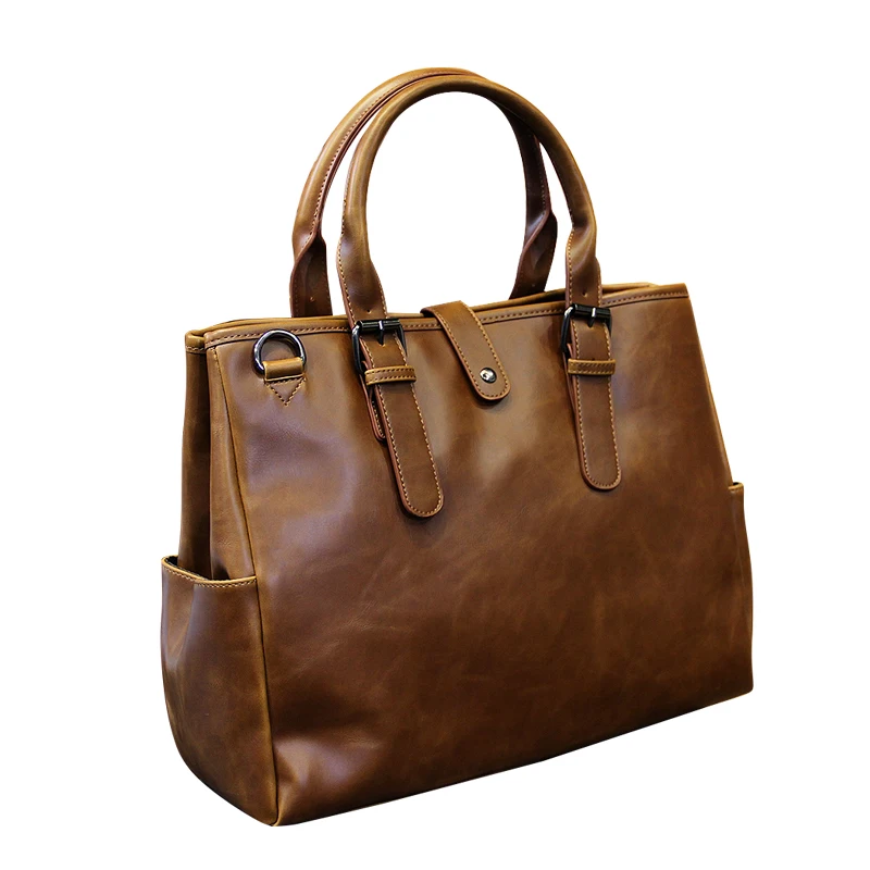 Кожаная сумка Crazy Horse для мужчин, винтажная вместительная сумка для компьютера в стиле ретро, простой офисный портфель
