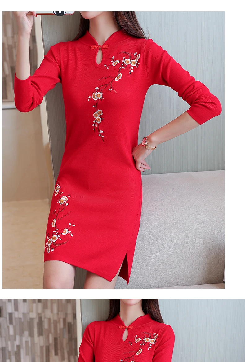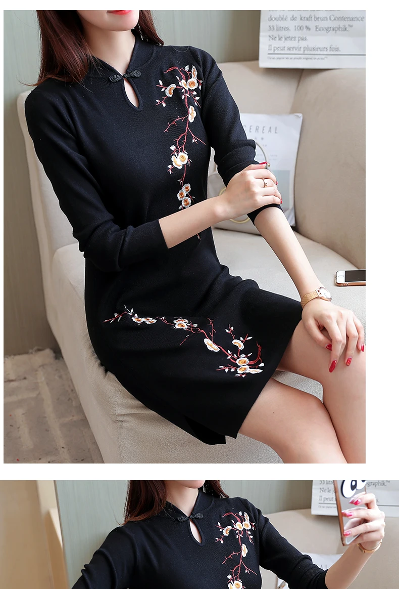 Платье Чонсам в современном китайском стиле, длинное ежедневное платье с длинными рукавами для молодых девушек