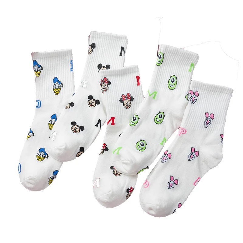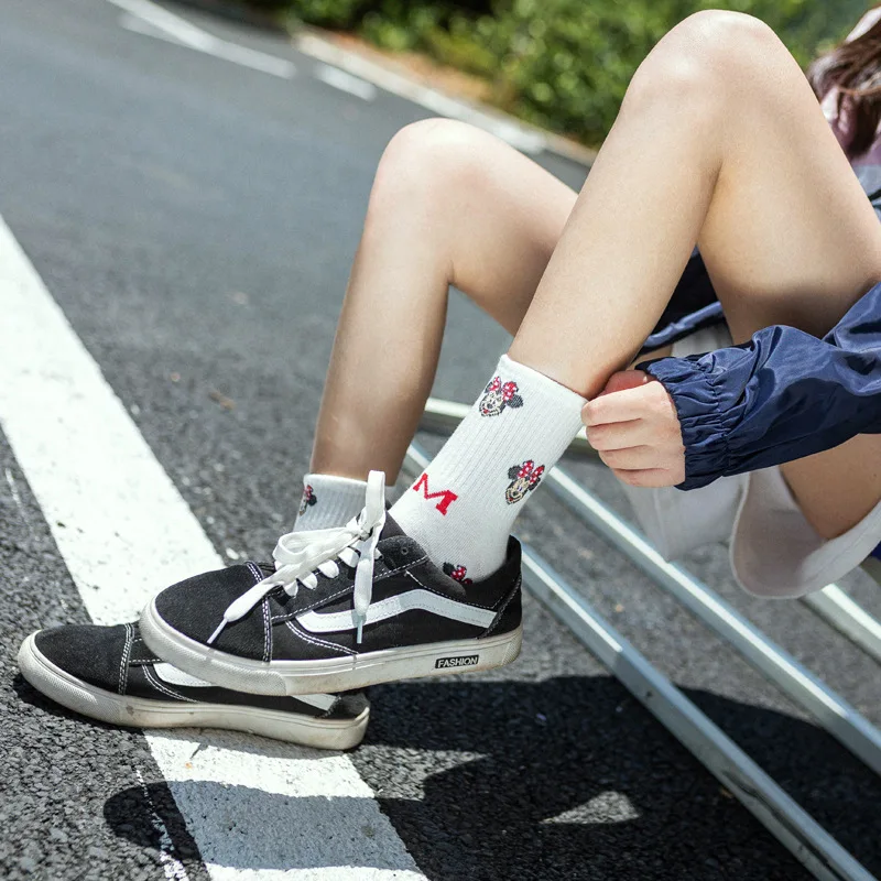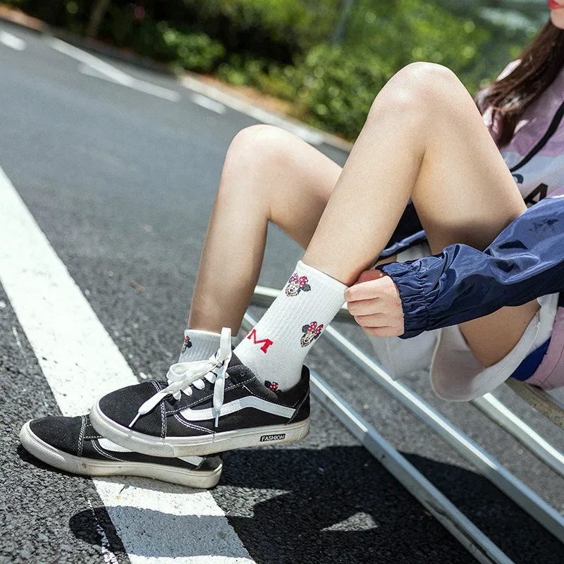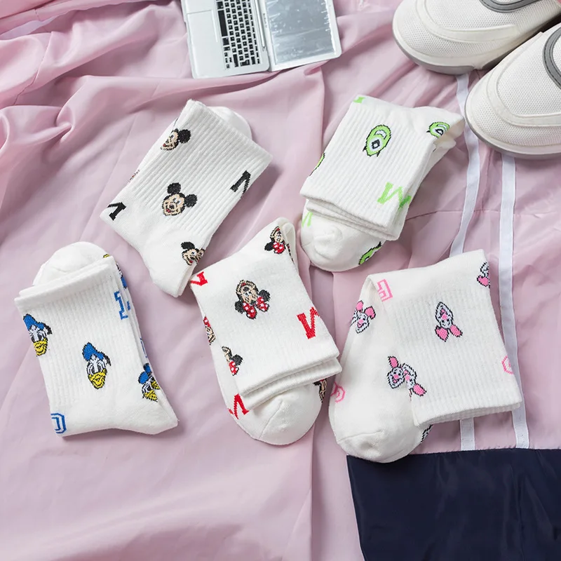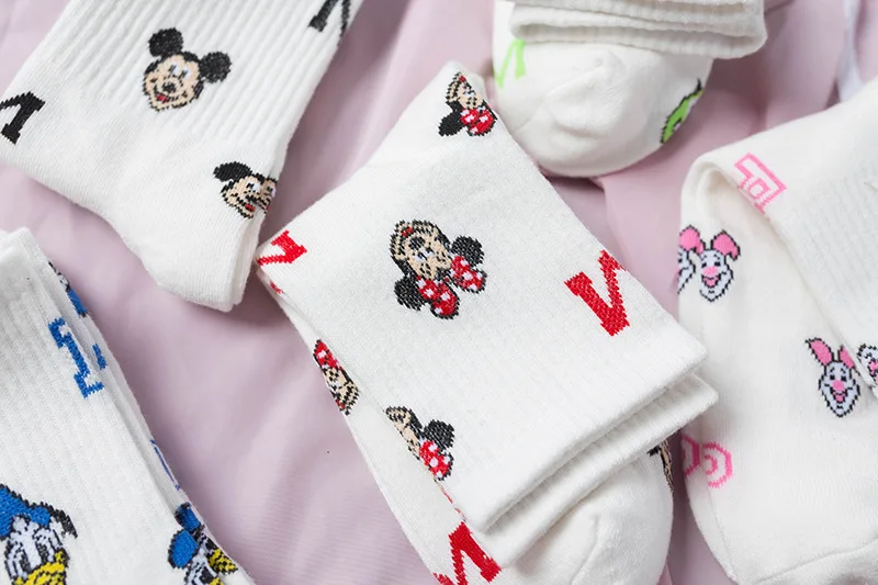 Женские носки с мультипликационным принтом Микки, забавные длинные хлопковые носки Harajuku в Корейском стиле, женские повседневные милые носки с мышкой