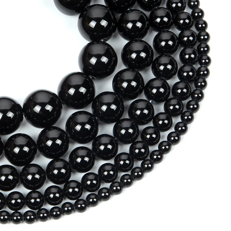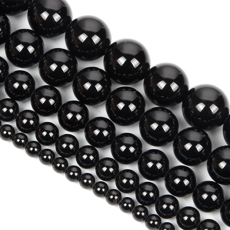 Бусины из натурального камня для изготовления ювелирных изделий сделай сам, гладкие круглые черные Агаты, бусины-разделители россыпью для ожерелий, браслетов ручной работы, 4, 6, 8, 10, 12 мм