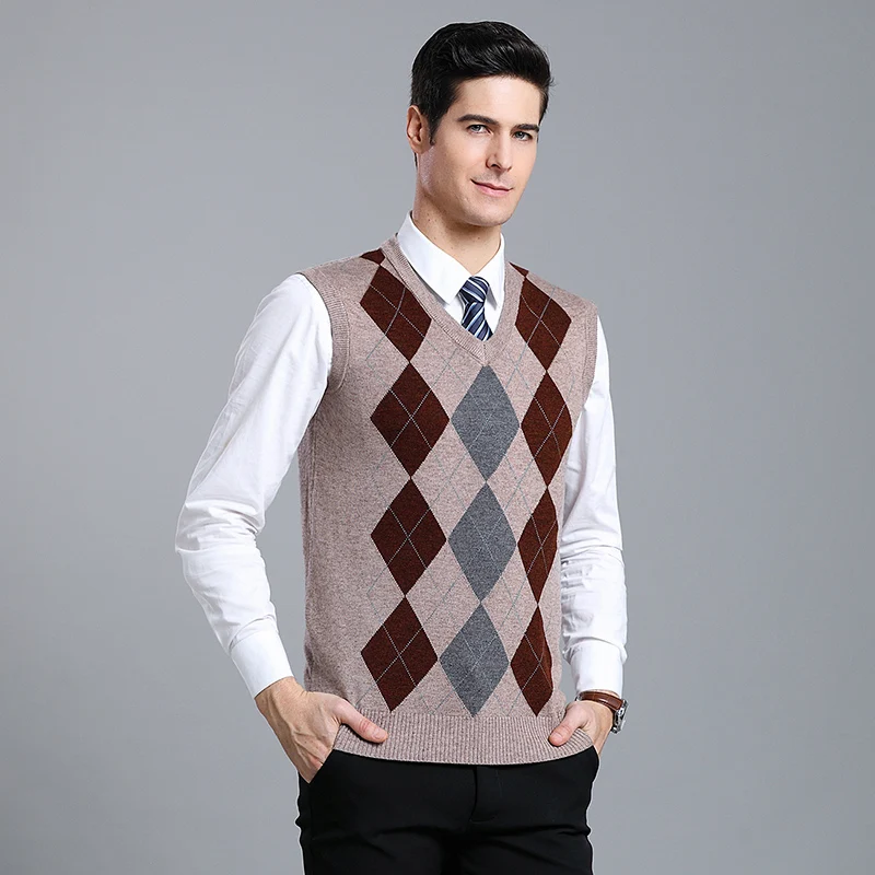 Свитер с узором ромбиками, пуловер, вязаный жилет для мужчин, шерст...
