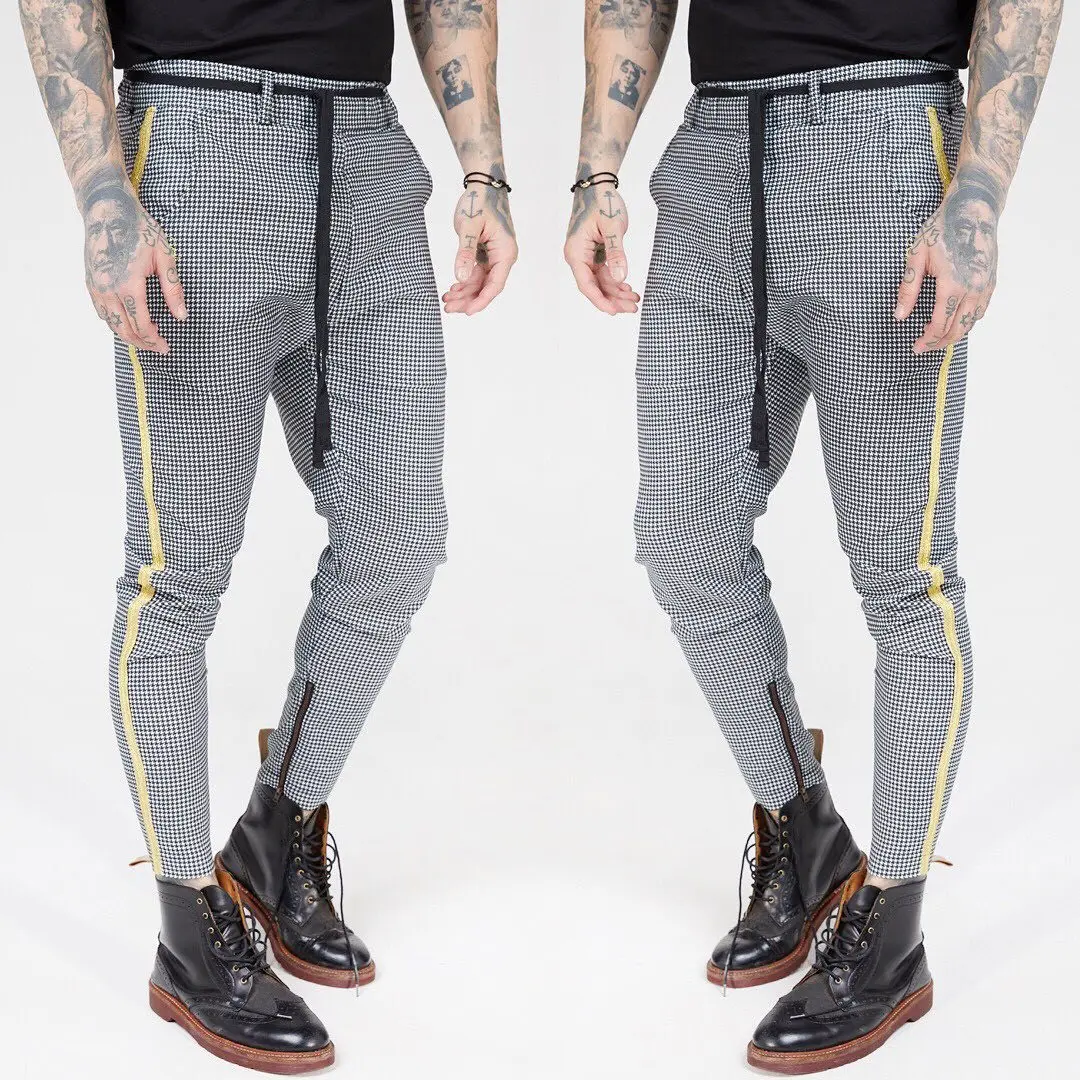 Облегающие мужские чиносы, брюки чиносы в клетку, серые, с полоскам...
