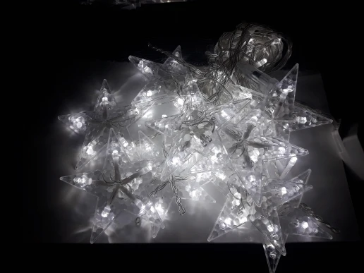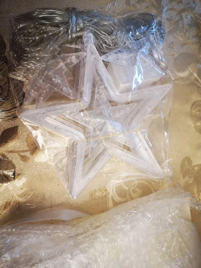 Отличная гирлянда. Товар соответствует фотографиям магазина. Надежно упакован, повреждений звезд и проводов нет. Советую.