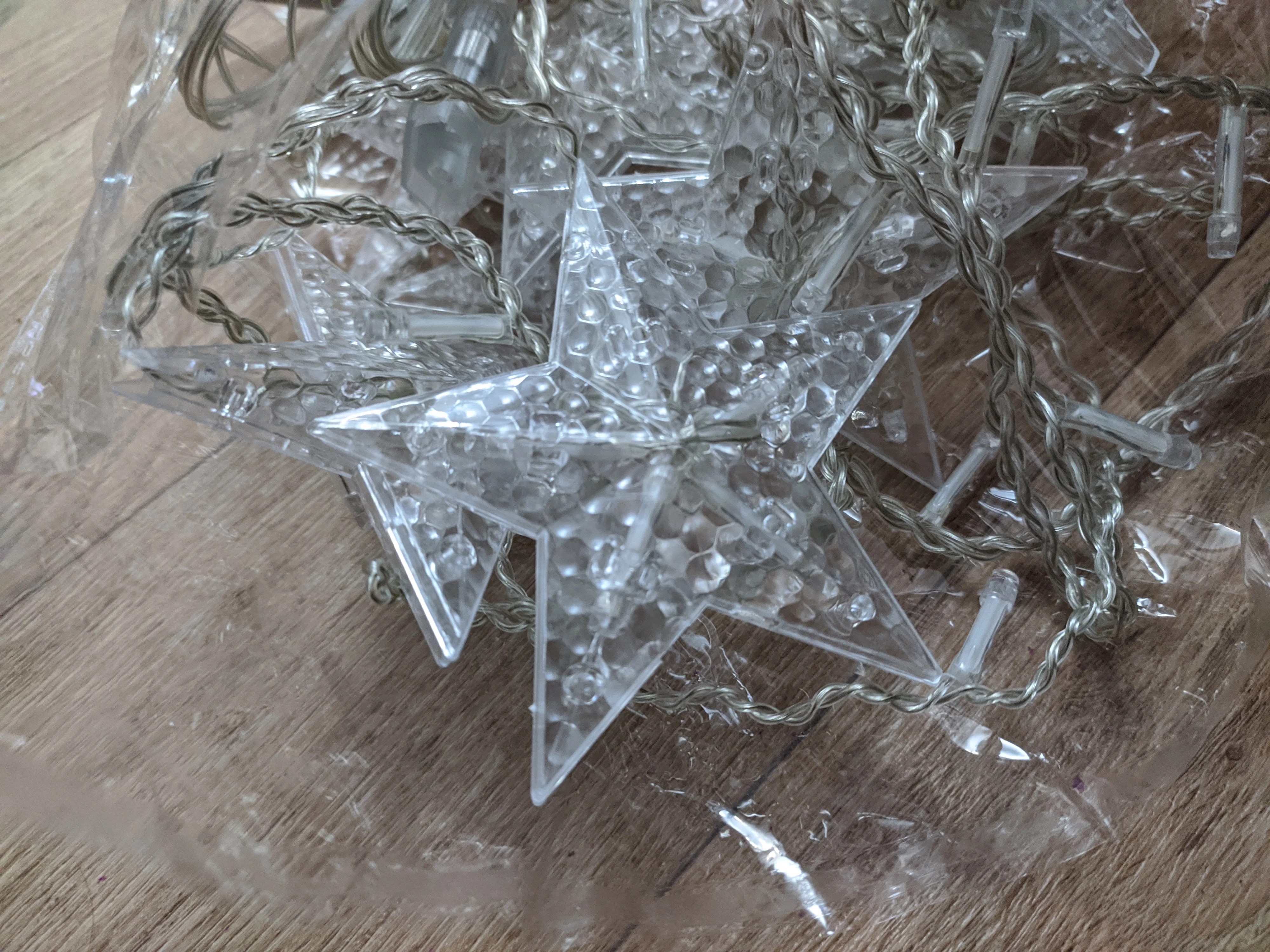 Просто отличная гирлянда. Пришла очень хорошо упакованная и быстро, до москвы за 2 недели.свет очень теплый и уютный, несколько режимов мигания, качество вполне хорошее, посторонних запахов нет. Только я с начала не догадалась размотать звездочки - на втором фото они короткие, га третьем фото я все размотала и получилась красота, как заявлено.