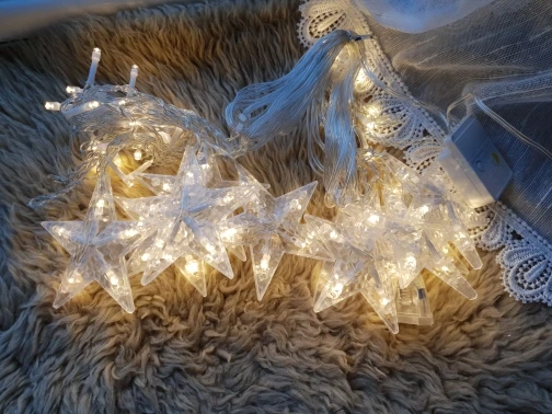 Красивая и качественная гирлянда. Правда длина звёздочек отличается, они значительно короче чем на фото.