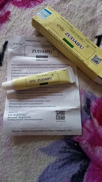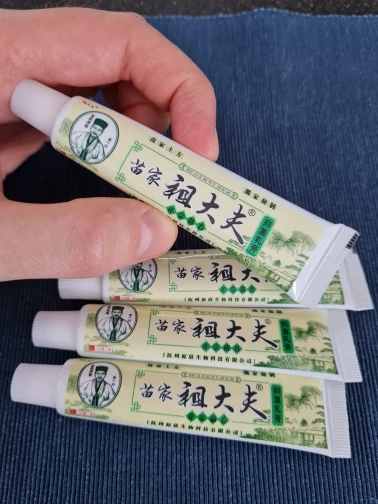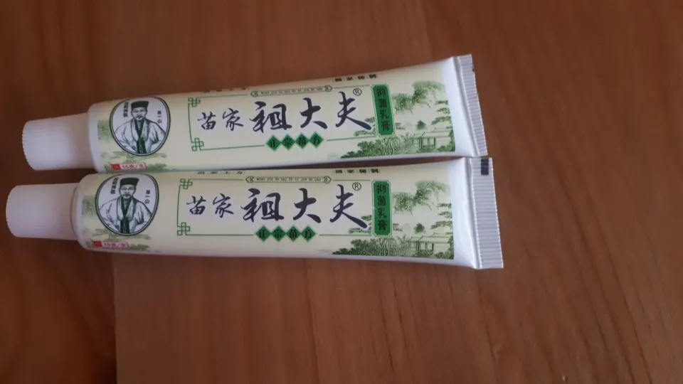 Крем помогает! Увидела данный крем по приятной цене - всего 1.66$. Решила взять и попробовать. Результат меня удивил. Мазала бляшки на одной руке, чтоб отследить результат, на все бляшки наносить не решилась. Бляшки перестали шелушиться через 2 дня, остались розовые пятнышки(кто болеет псориазом, тот поймет). Мазала один раз в сутки. Ещё через 3-4 дня пропали и красные пятнашки, осталось только едва заметное чуть белесое пятнышко на месте крупной бляшки,где были мелкие бляшки вообще следа не осталось. Кстати, когда крем наносишь, ощущается приятная прохлада, успокаивающая кожу, видимо содержится ментол или что-то подобное, поэтому на лицо лучше не наносить, я попробовала на щеке - глаза стали слезиться. Аллергии не было выявлено, побочных явлений тоже. Теперь буду и другие болячки мазать без опасений. Правда смущает отсутствие срока годности и даты производства на упаковке, но мазь все равно долго храниться не будет Товар рекомендую! Для людей болеющих псориазом - этот крем находка!