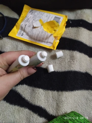 товар пришел за 1,5месяца еще не пробовала.продавец положил в подарок второй тюбик,за что ему спасибо.