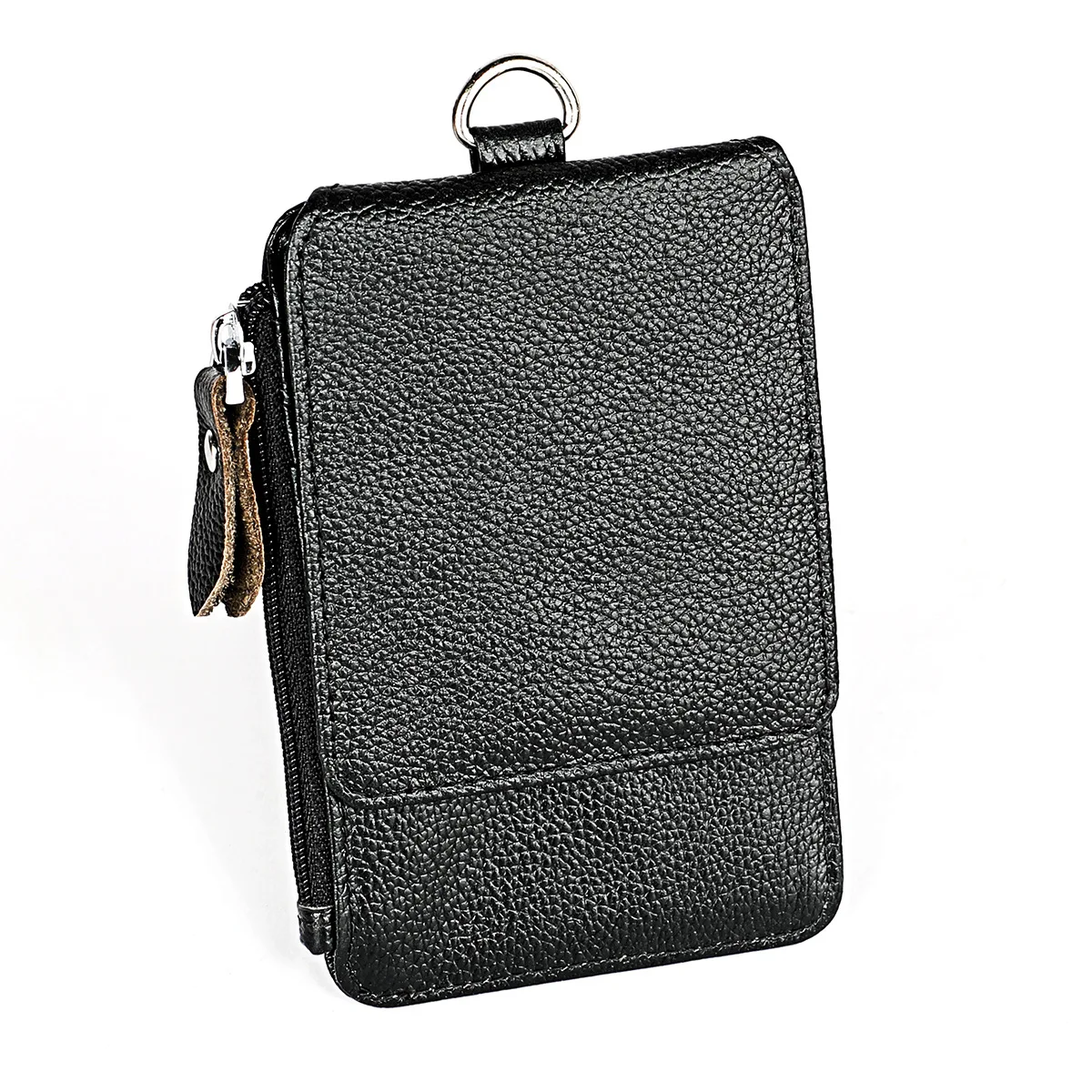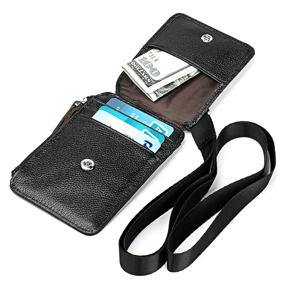 Чехол-кошелек с ремешком на шею и именной биркой, из натуральной кожи
