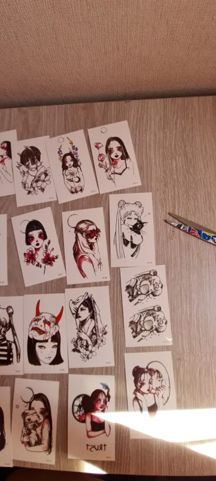 Татушки заказала второй раз...пришли быстро..интересные..держатся хорошо ...долго...классные...продавцом и татушками довольна...