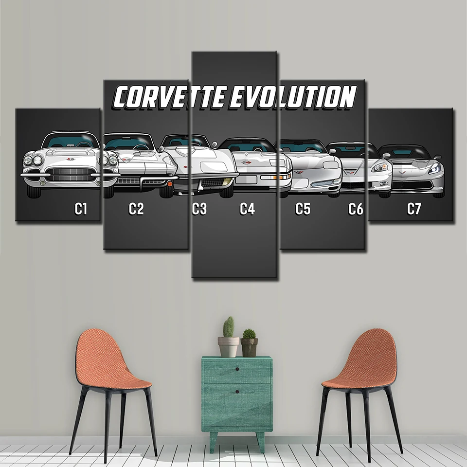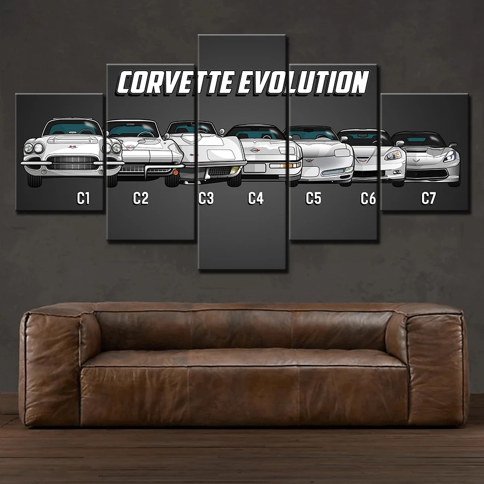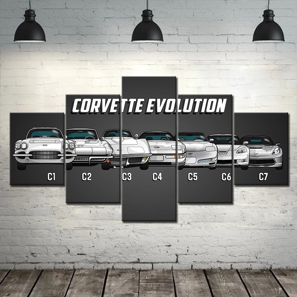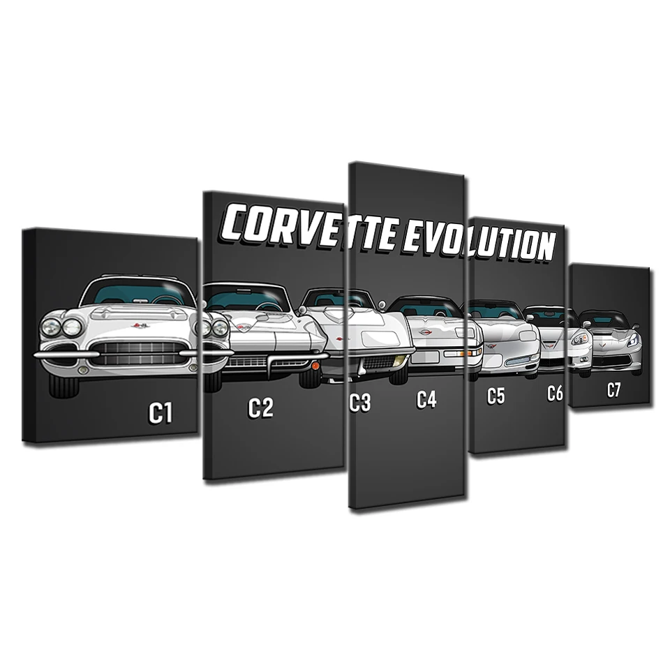 Картина на холсте, настенная рама, домашняя декоративная комната, HD печать, 5 панелей, модульные картины, постер для автомобиля Chevrolet Corvette