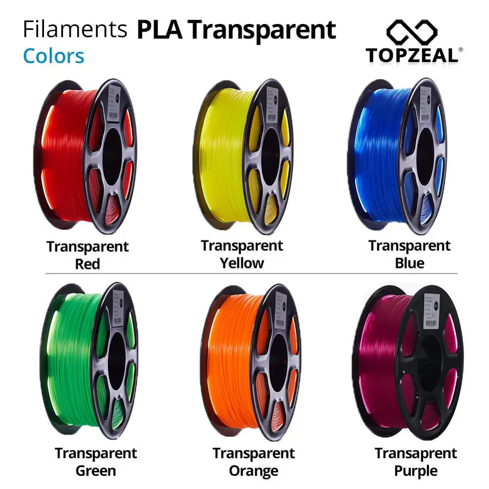 Прозрачный пла-пластик TOPZEAL для 3D-принтера, 1,75 мм, 1 кг, катушка, пла-нить, материал для 3d-печати, пла-прозрачная серия