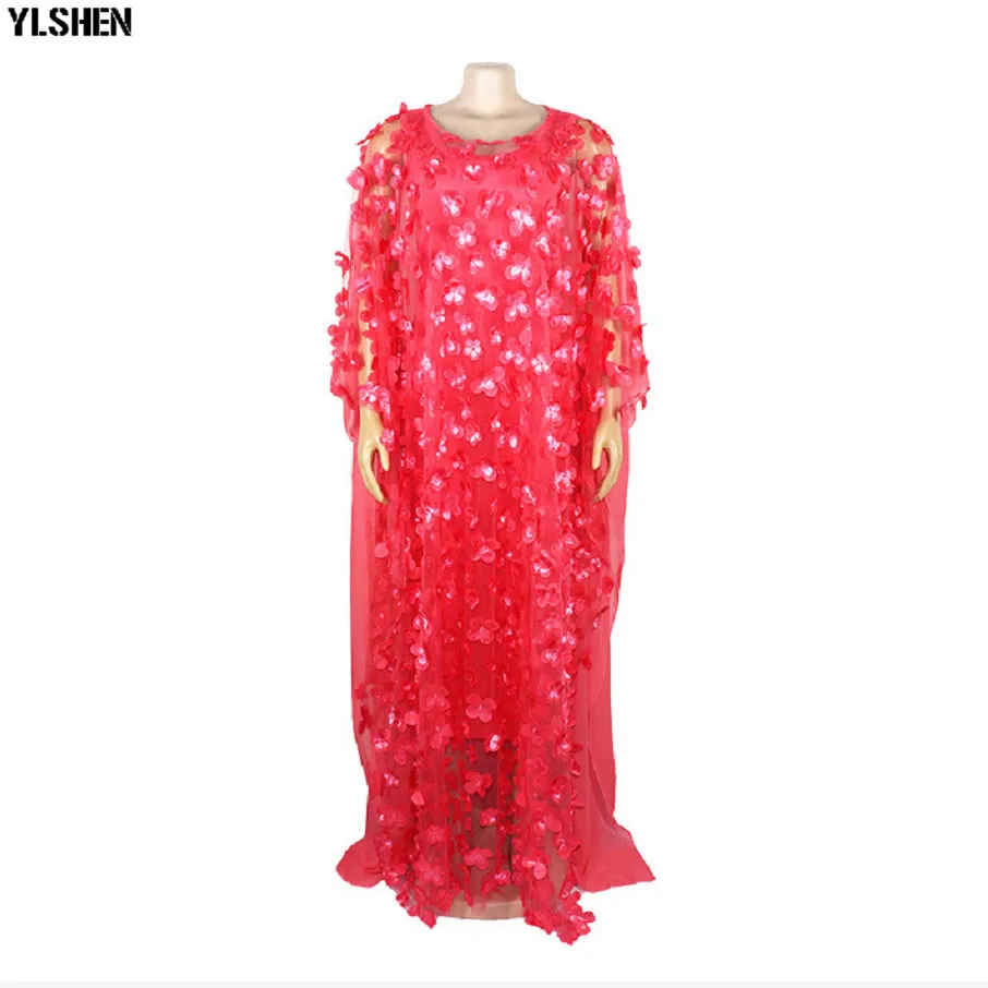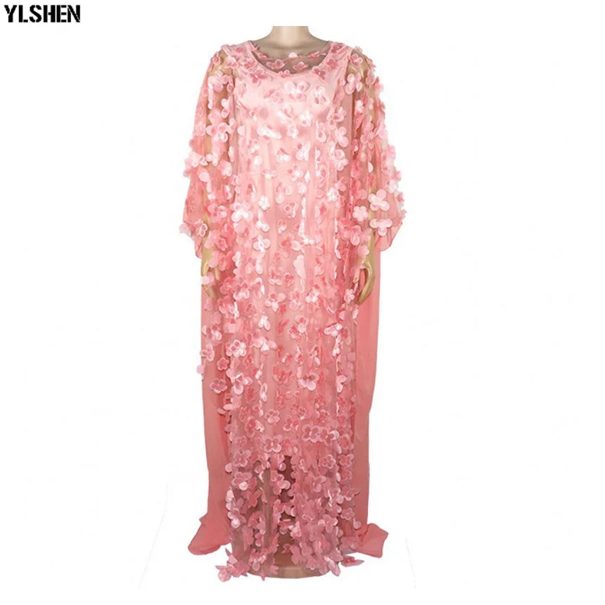 Новые кружевные африканские платья для женщин Дашики свободная африканская одежда базин бубоу халат африканская юбка Цветочная вышивка длинное платье без повязки на голову