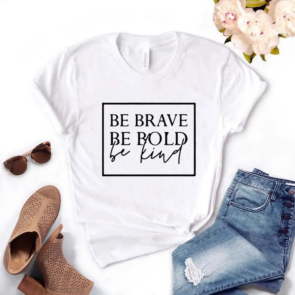 Женская футболка с принтом Be Brave Be Bold, хлопковая хипстерская футболка, забавный подарок для девушек, 6 цветов, Прямая поставка, ZY-482 г.