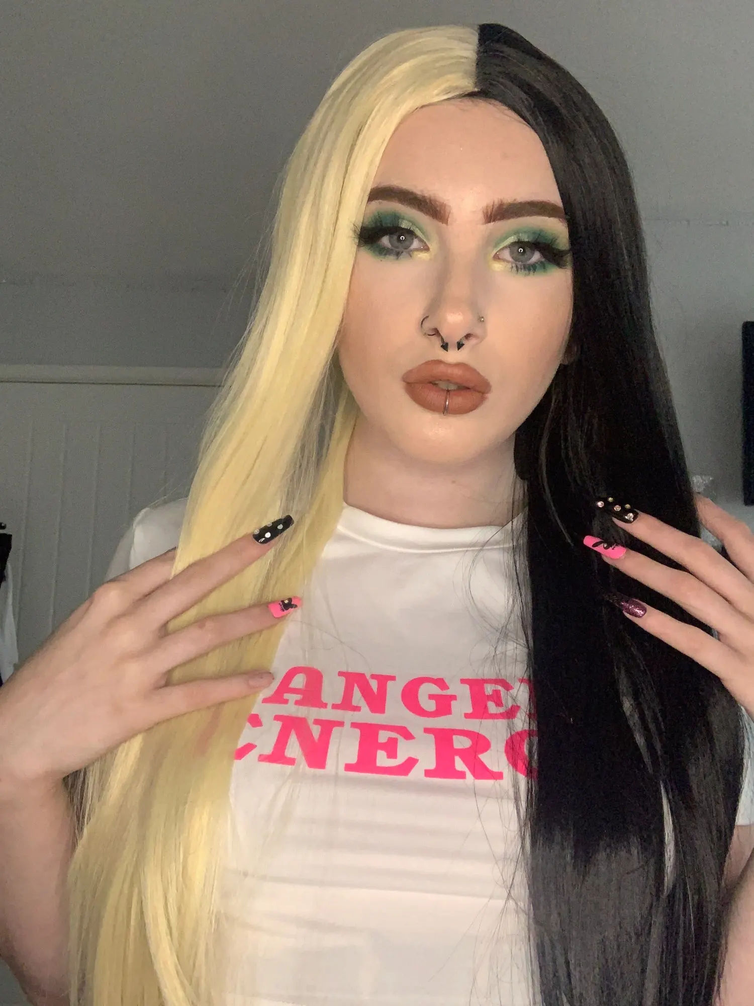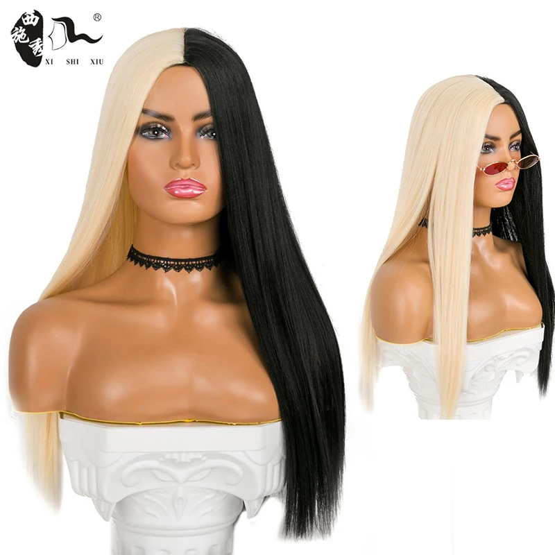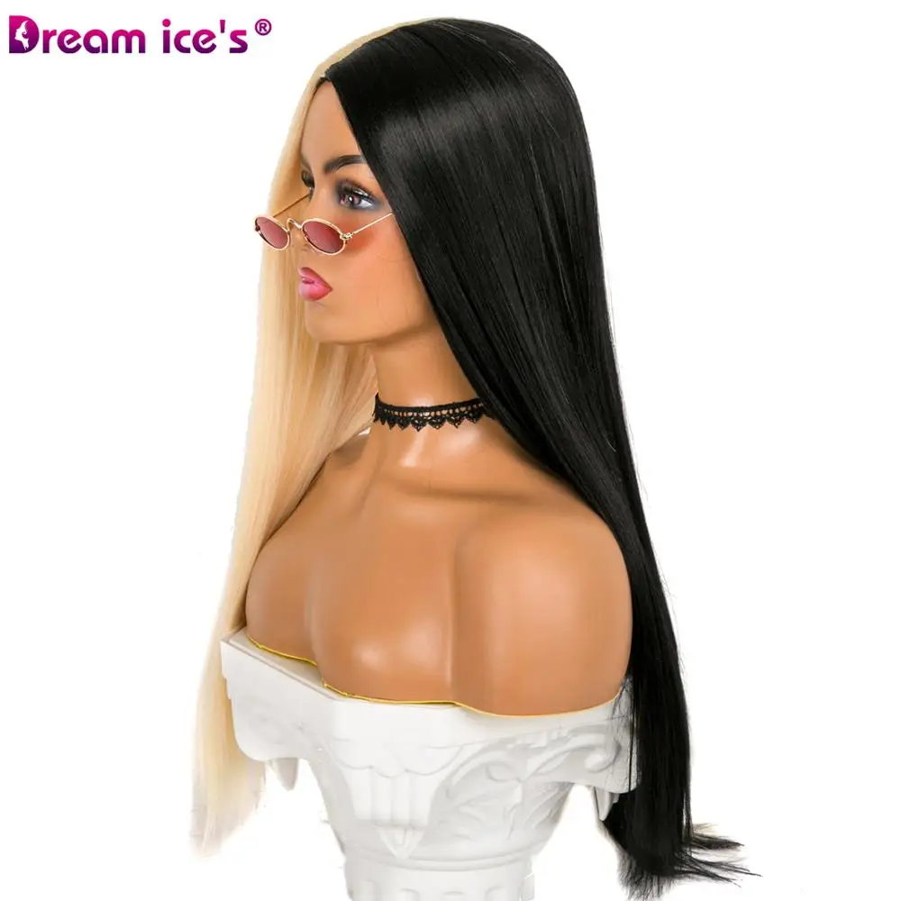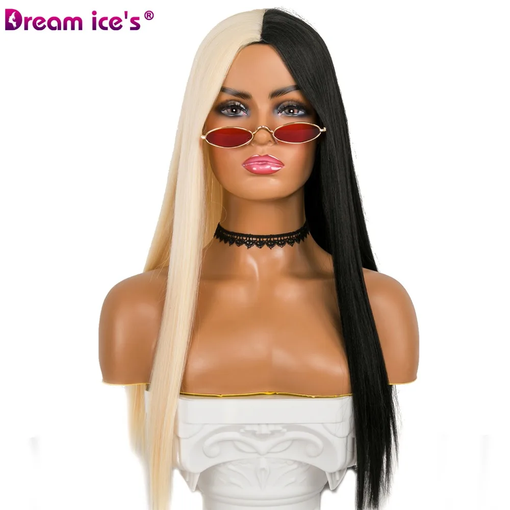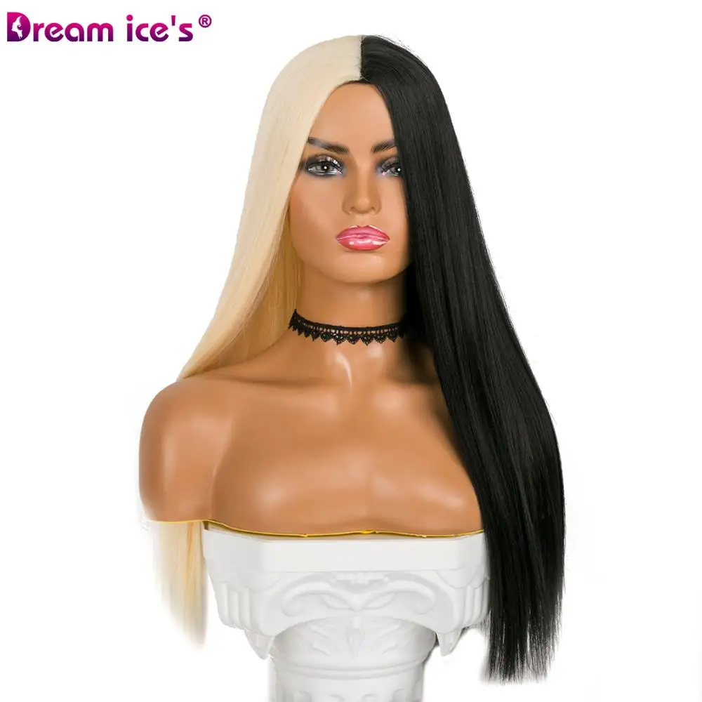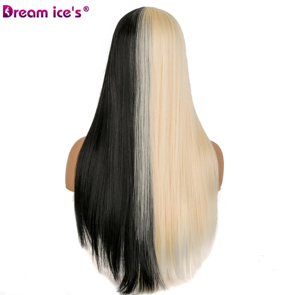 Синтетические наполовину черные и наполовину белые 21 дюйм длинные волосы парики для вечеринок для женщин Косплей событие Dream ice's