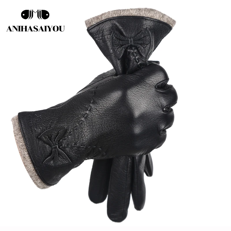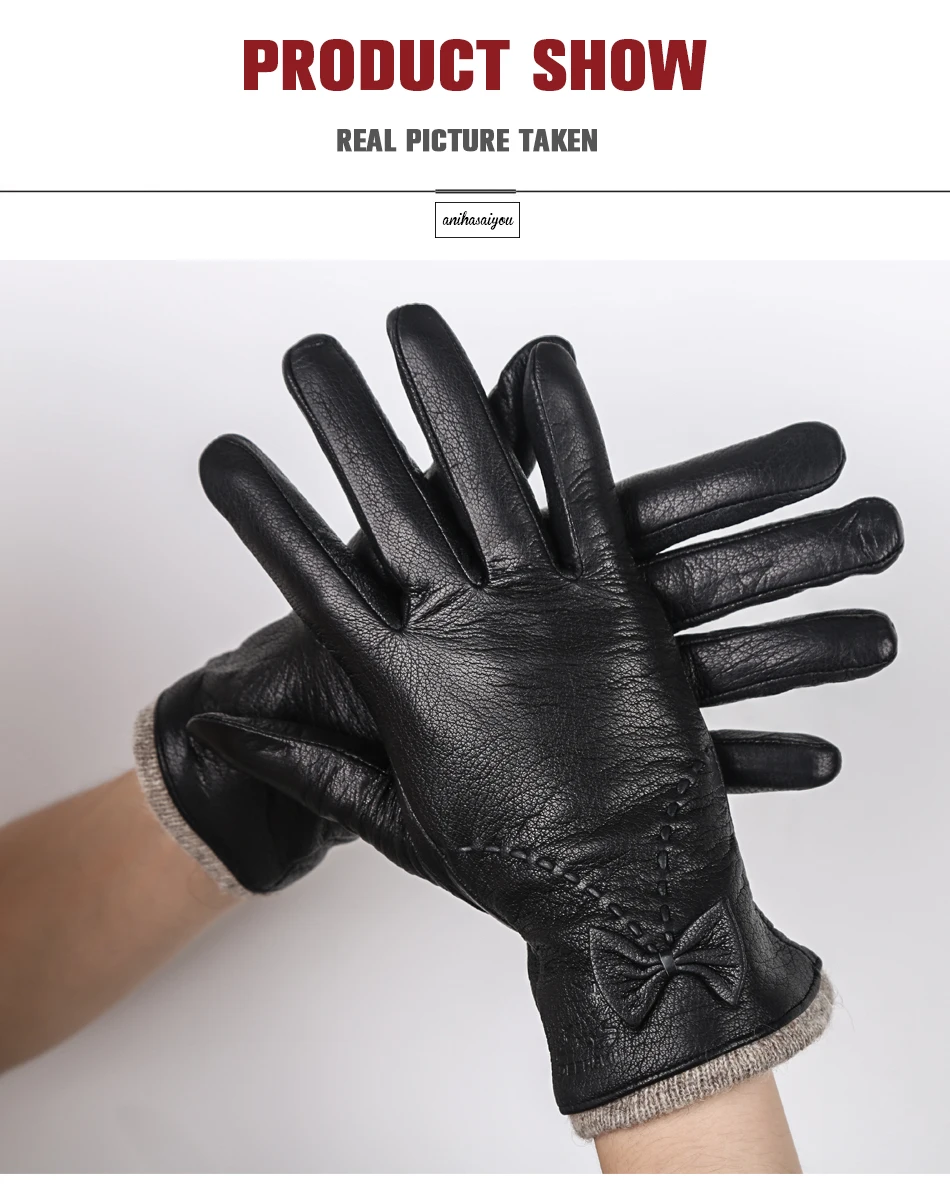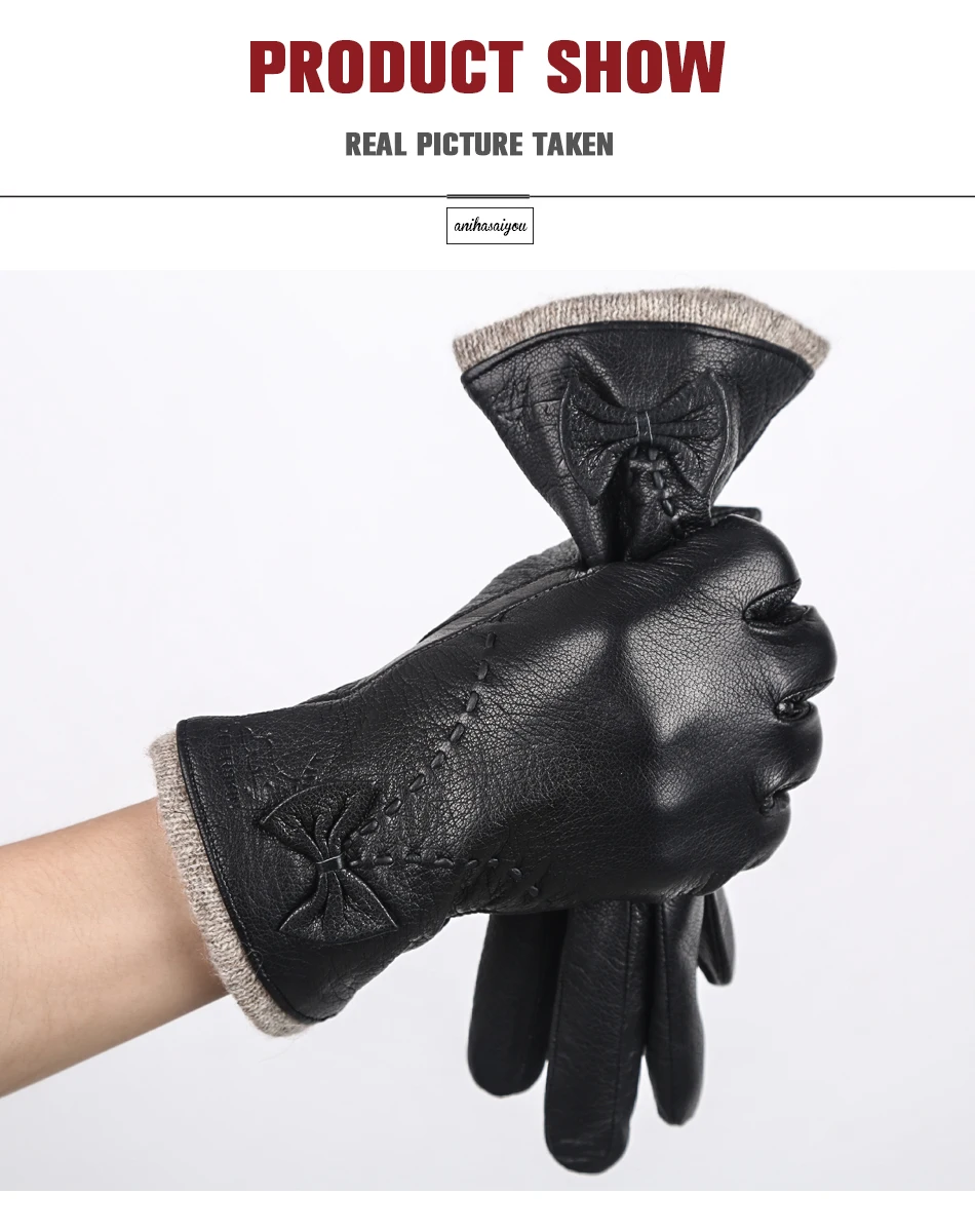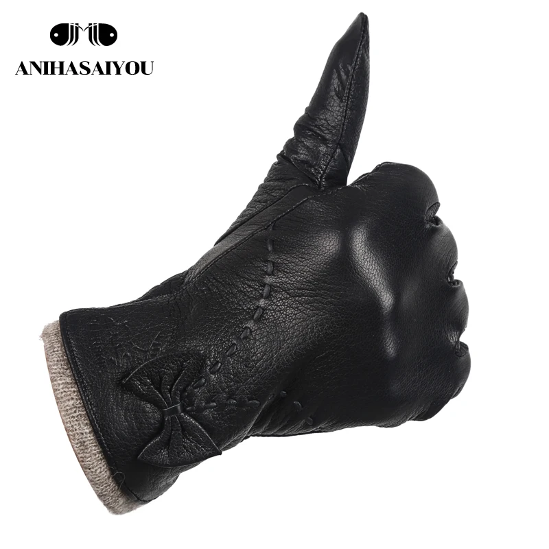 Кожаные перчатки высшего качества для женщин, перчатки из натуральной овчины для женщин, уличные Зимние перчатки для женщин-8030