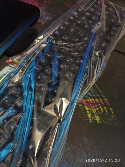 Заказ доставили на 3 день в Москву лично в руки курьером. Клавиатура очень классная с регулируемой подсветкой. Немного пахнет пластиком, но потом выветрится, думаю. Достаточно бесшумная, НО: посередине прогибается при сильном нажатии. Всё исправили мягкие мебельные круглишки (которые на табуретки и столы на ножки крепятся). За свои деньги продукт выше всяких похвал.