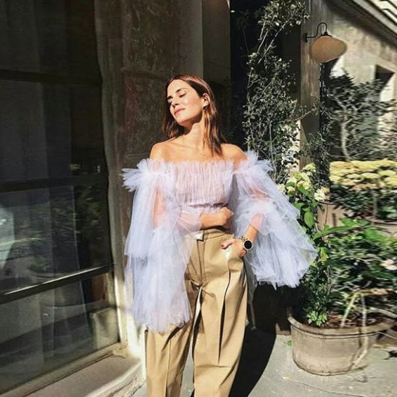 Женская блузка из тюля, с открытыми плечами и длинным рукавом