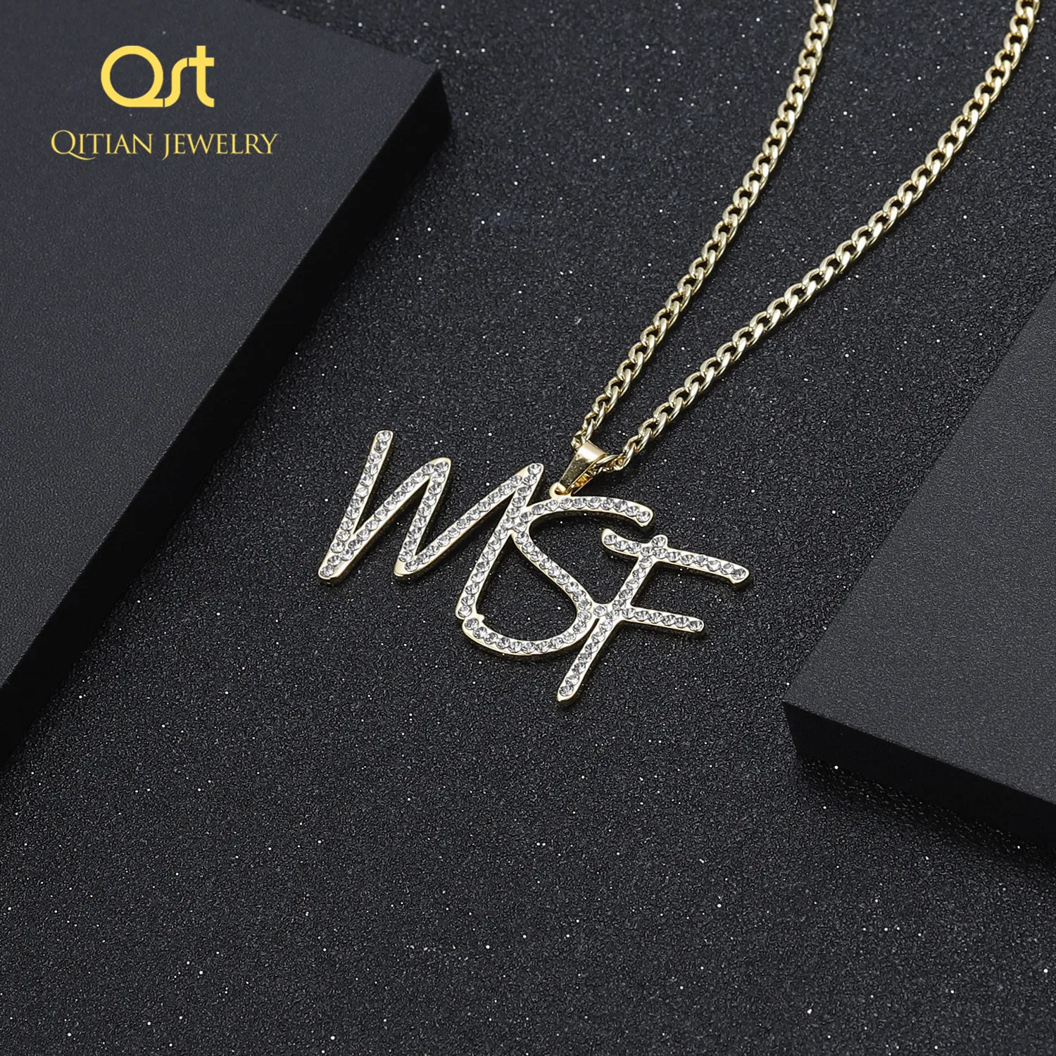 925Qitian настроить Сверкающее имя в кристаллах имя ожерелье для же...