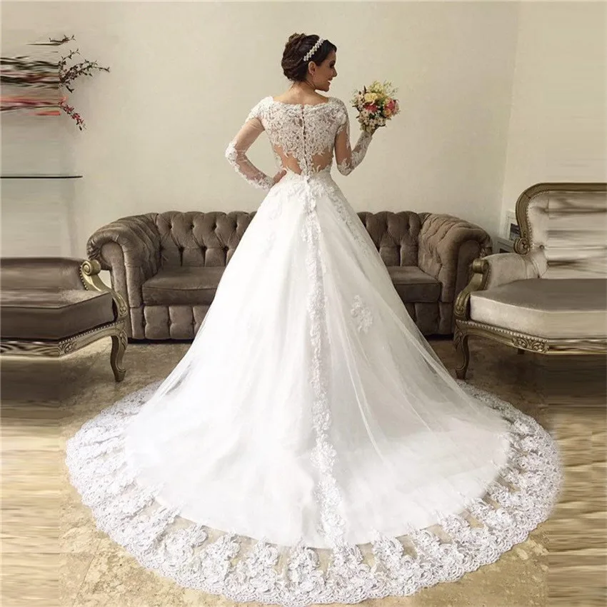 Роскошное кружевное бальное платье из тюля с длинным рукавом, свадебные платья, свадебное платье, платье для невесты, свадебные платья, 2020 robe De mariage