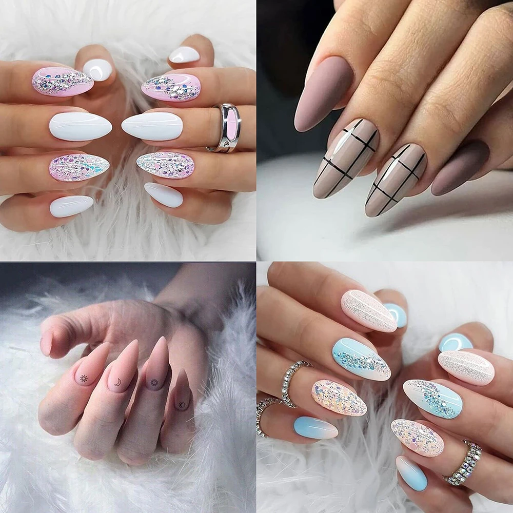 Тонкий ноготь накладные ногти прозрачные острые концы стилет блестящие искусственные ногти акриловый ноготь