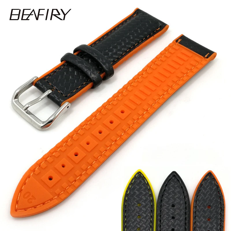 BEAFIRY 2019 Новый черный мягкий силиконовый ремешок для часов 20 мм 22 мм 24 мм водонепроницаемый ремешок для часов