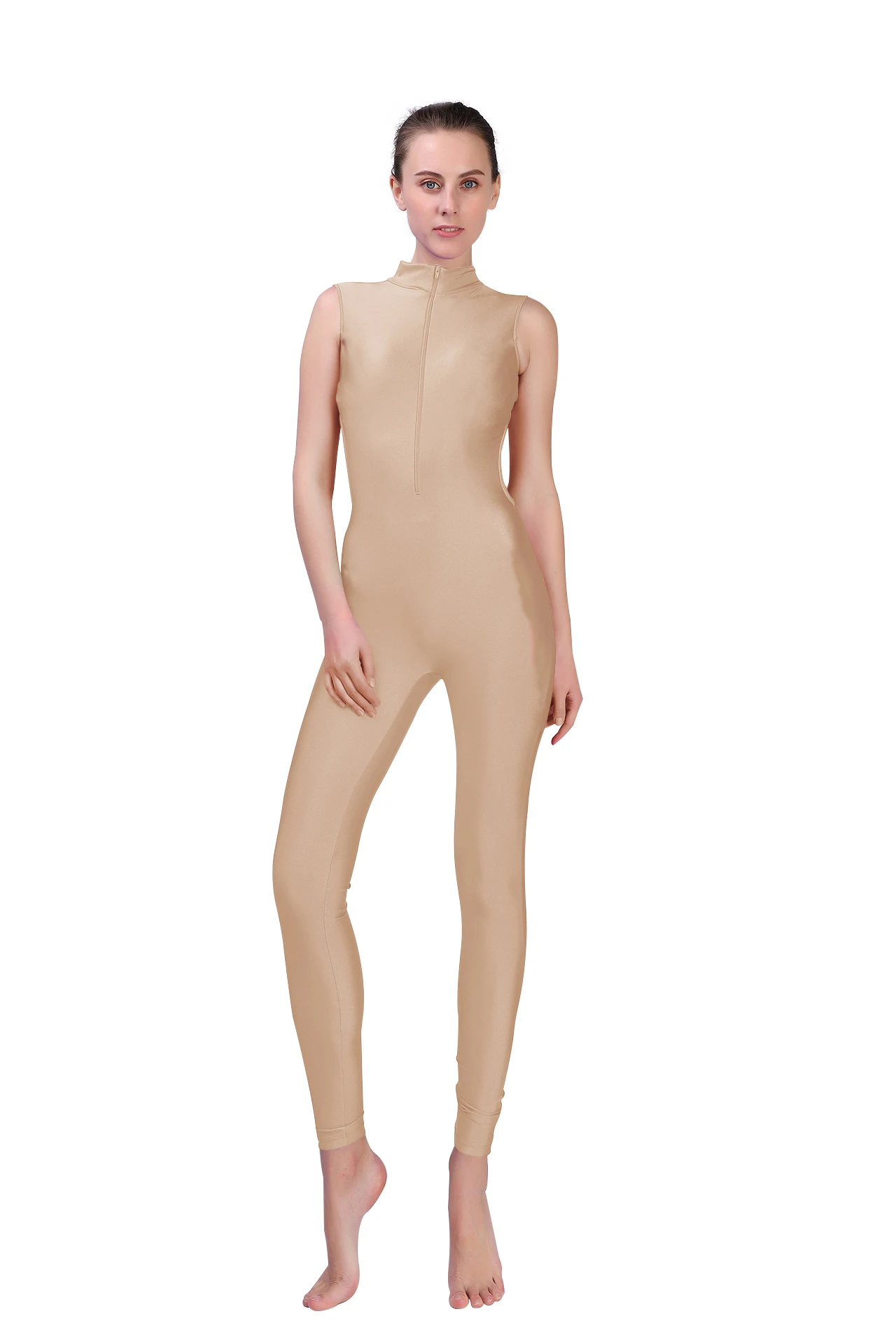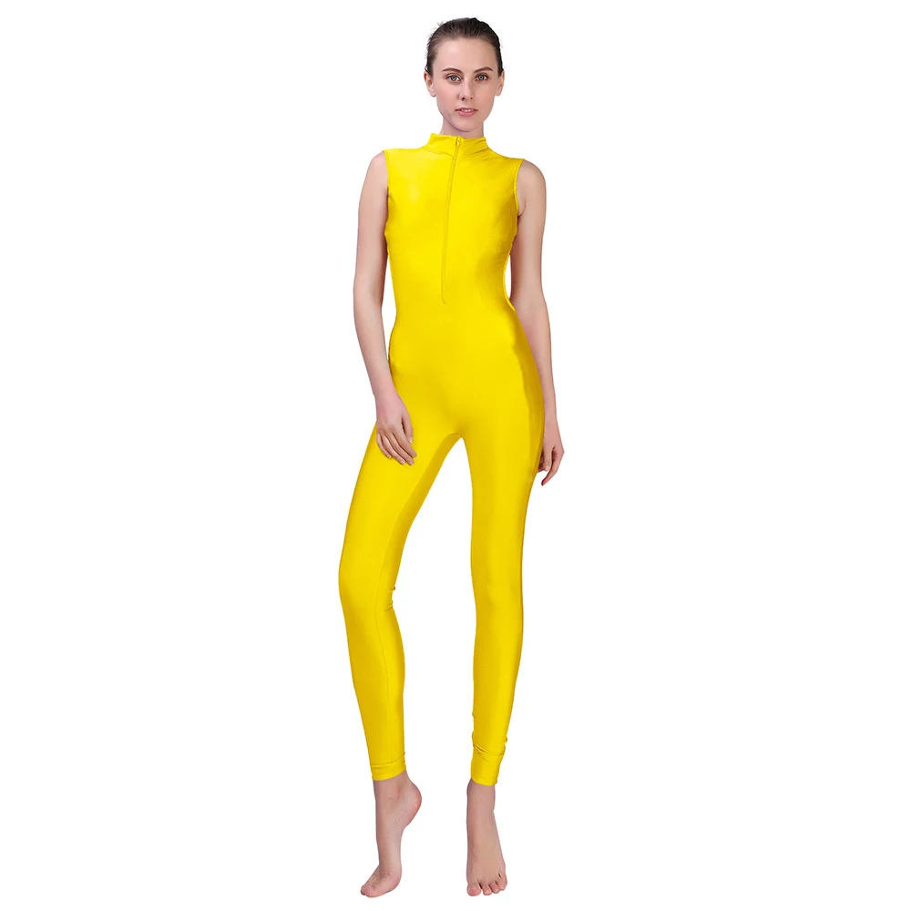 Женская водолазка без рукавов, комбинезон из спандекса для гимнастики, Облегающий комбинезон на молнии, Одежда для танцев полной длины, 90% нейлон, 10% спандекс, мягкая, дышащая, быстросохнущая ткань, отличная эластичная машинная стирка в холодной воде, без отбеливания и сушки