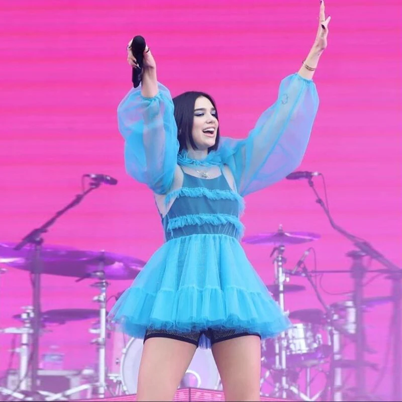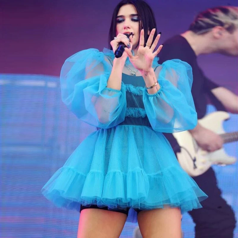 Модные платья из 2 предметов небесно-голубого тюля с оборками; Коро...